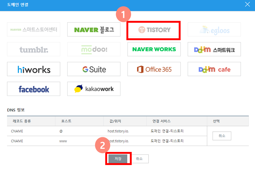 티스토리를 고르고 저장한다.
