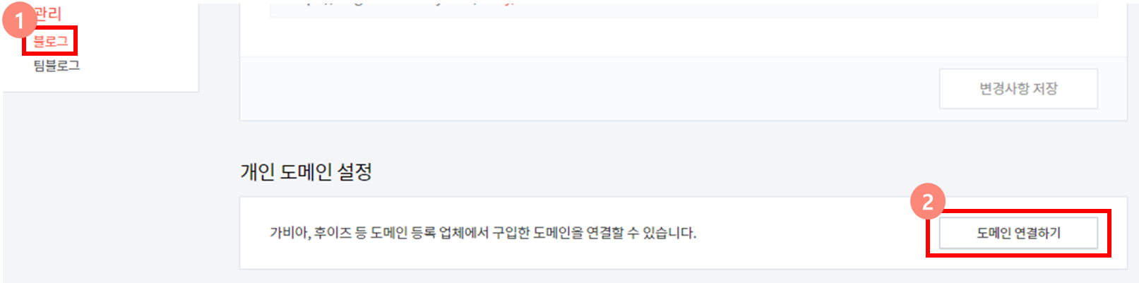 티스토리 관리페이지로 들어가서 블로그 -> 도메인 연결하기