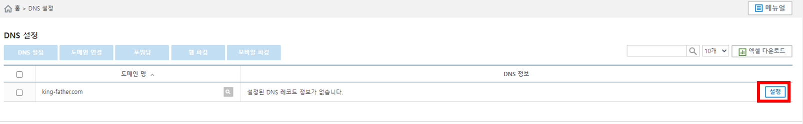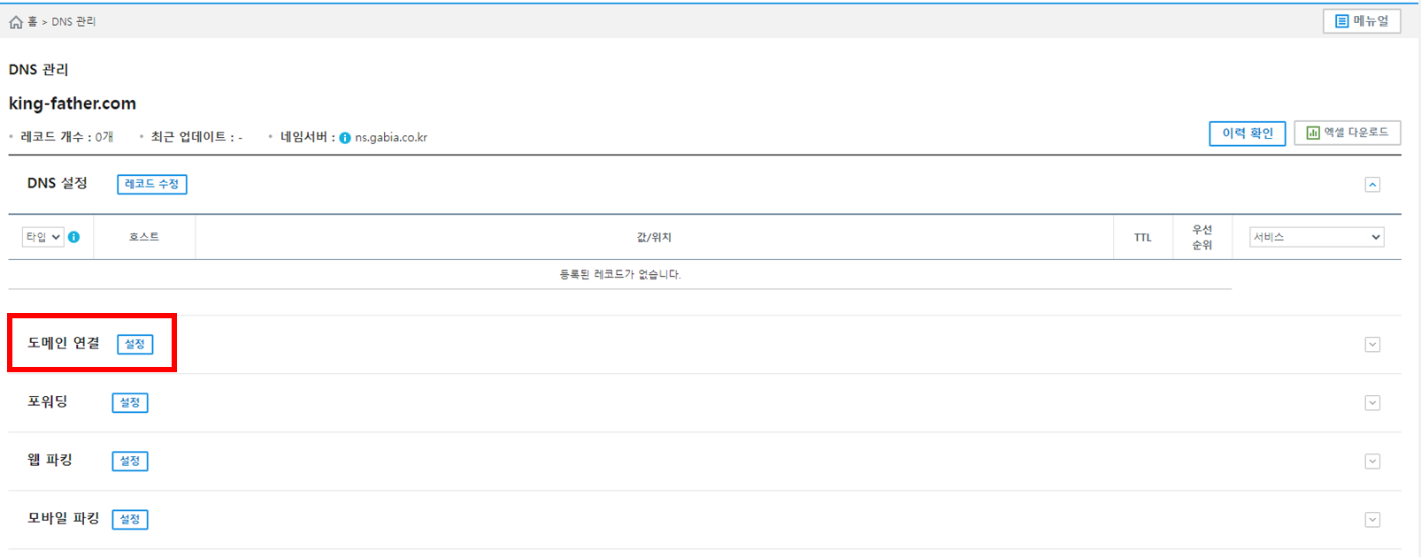 내가 구매한 도메인 DNS설정을 할수있는 페이지로 연결된다. 도메인 연결 설정 클릭
