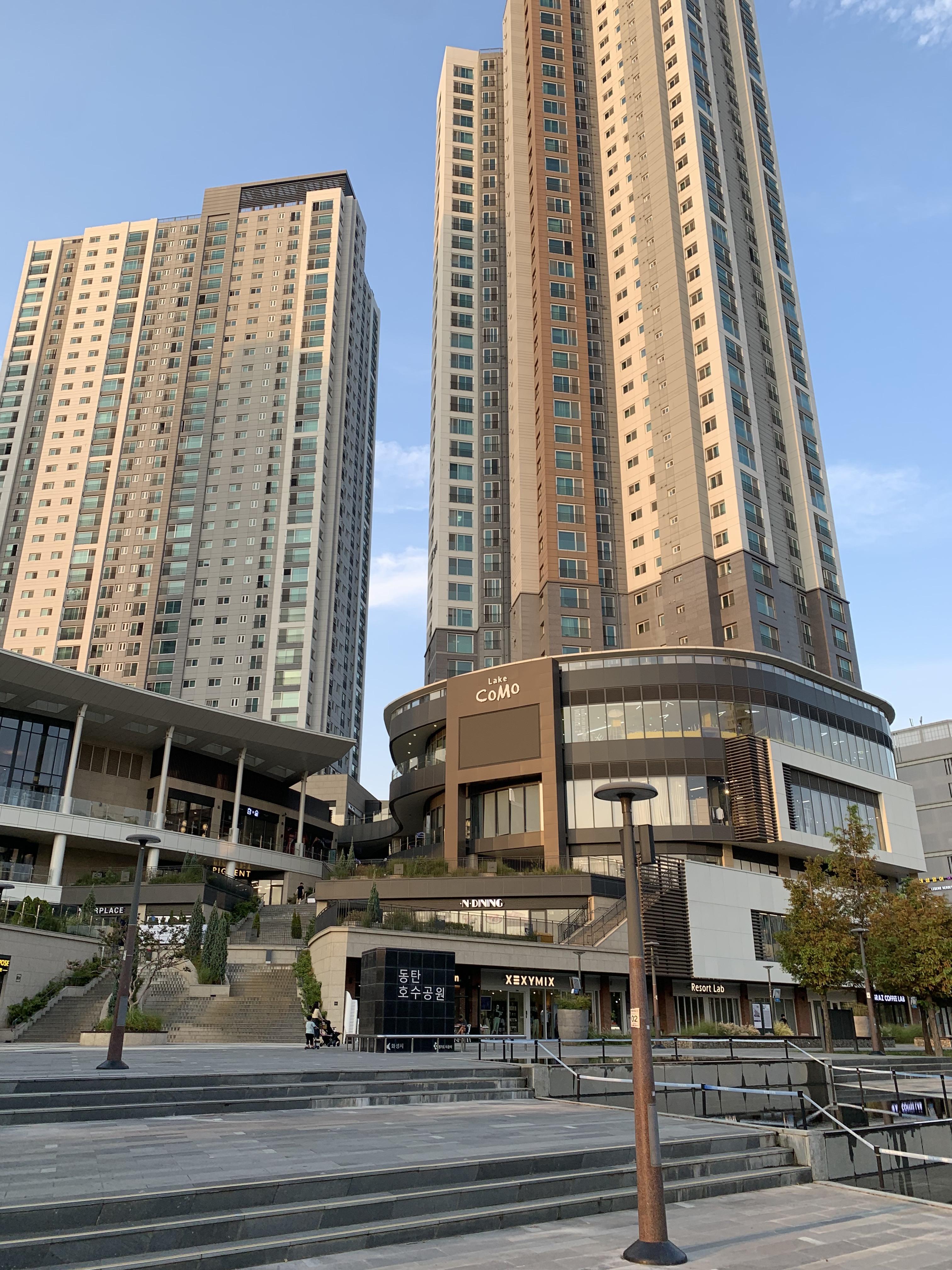 동탄호수공원에 있는 동탄린스트라우스더레이크아파트. 동탄호수공원의 대장아파트다. 우선 위치가 사기급으로 좋고, 상가도 멋있게 설계해 놔서 동탄에 산다면 이곳에 살고 싶다.