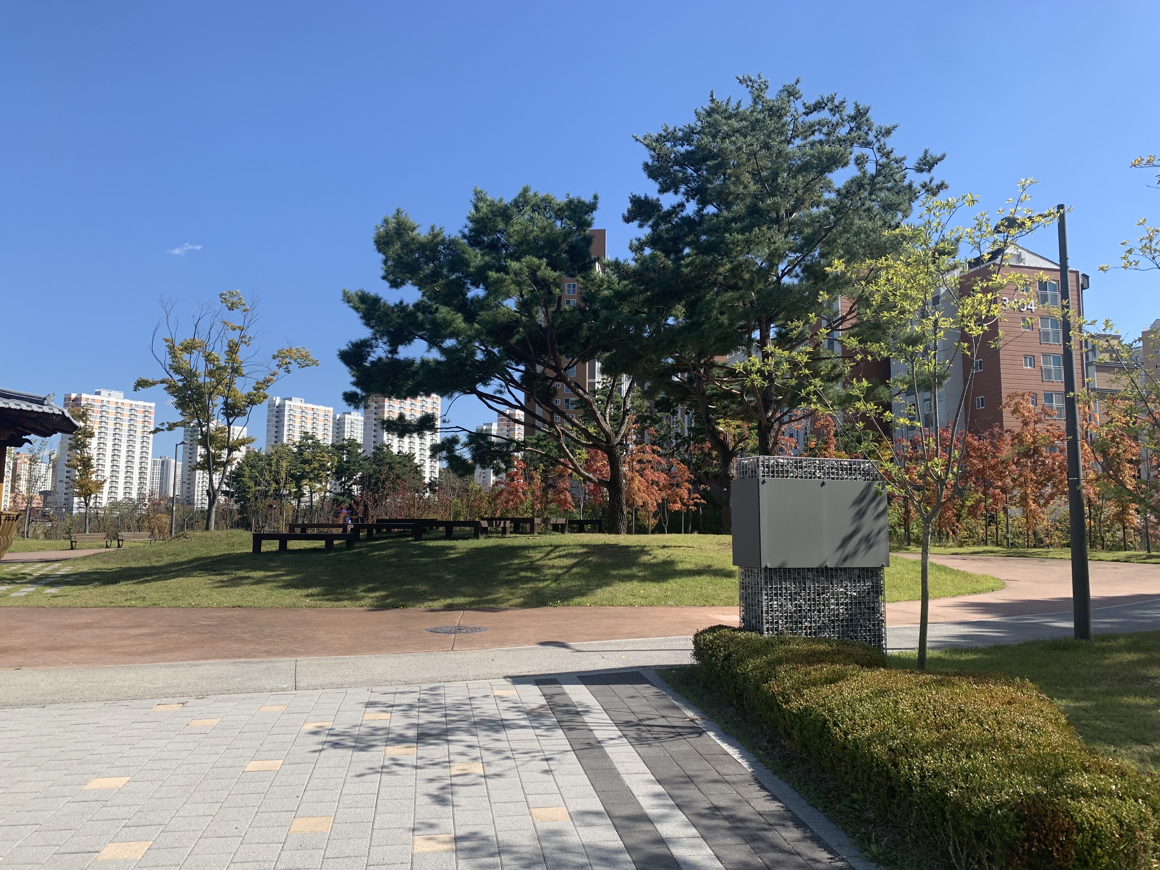 쭉 오르막길이다. 아직 양쪽 단지 모두 방음벽이 있어서 썰렁해 보이지만, 입주 후 조경과 어우러졌을 때 어떤 조화가 이뤄질지 궁금하다.