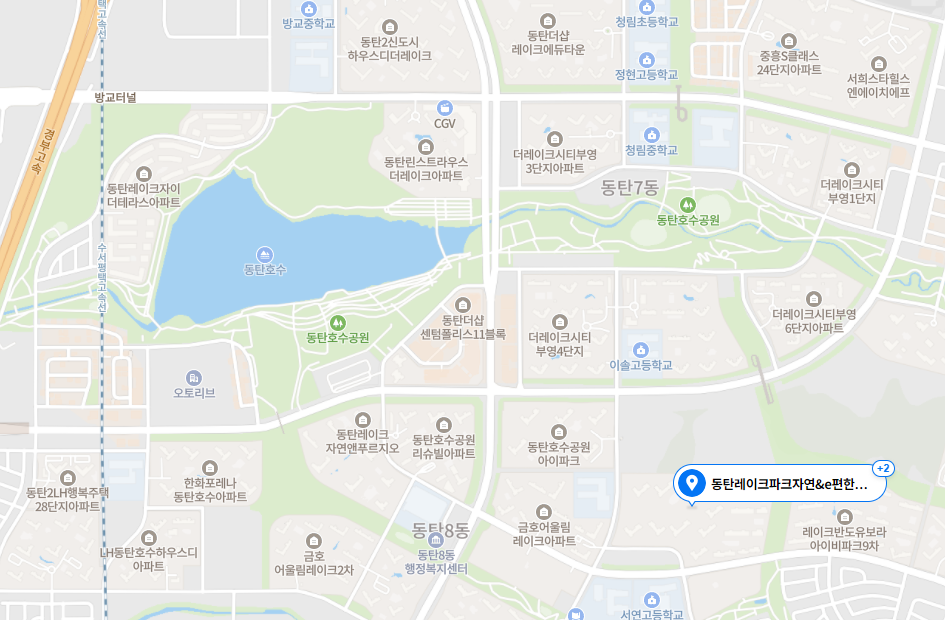 동탄 2 신도시에 위치해 있고, 동탄호수공원과는 조금 떨어져 있다. 아파트이름이 동탄레이크파크자연 앤 이편한세상인데 레이크파크는 지도로 봤을 때만 어느 정도 접해있지, 실제로는 호수공원과 떨어져 있어 단지에서 보이지 않는다. 이름은 그저 훼이크일 뿐.