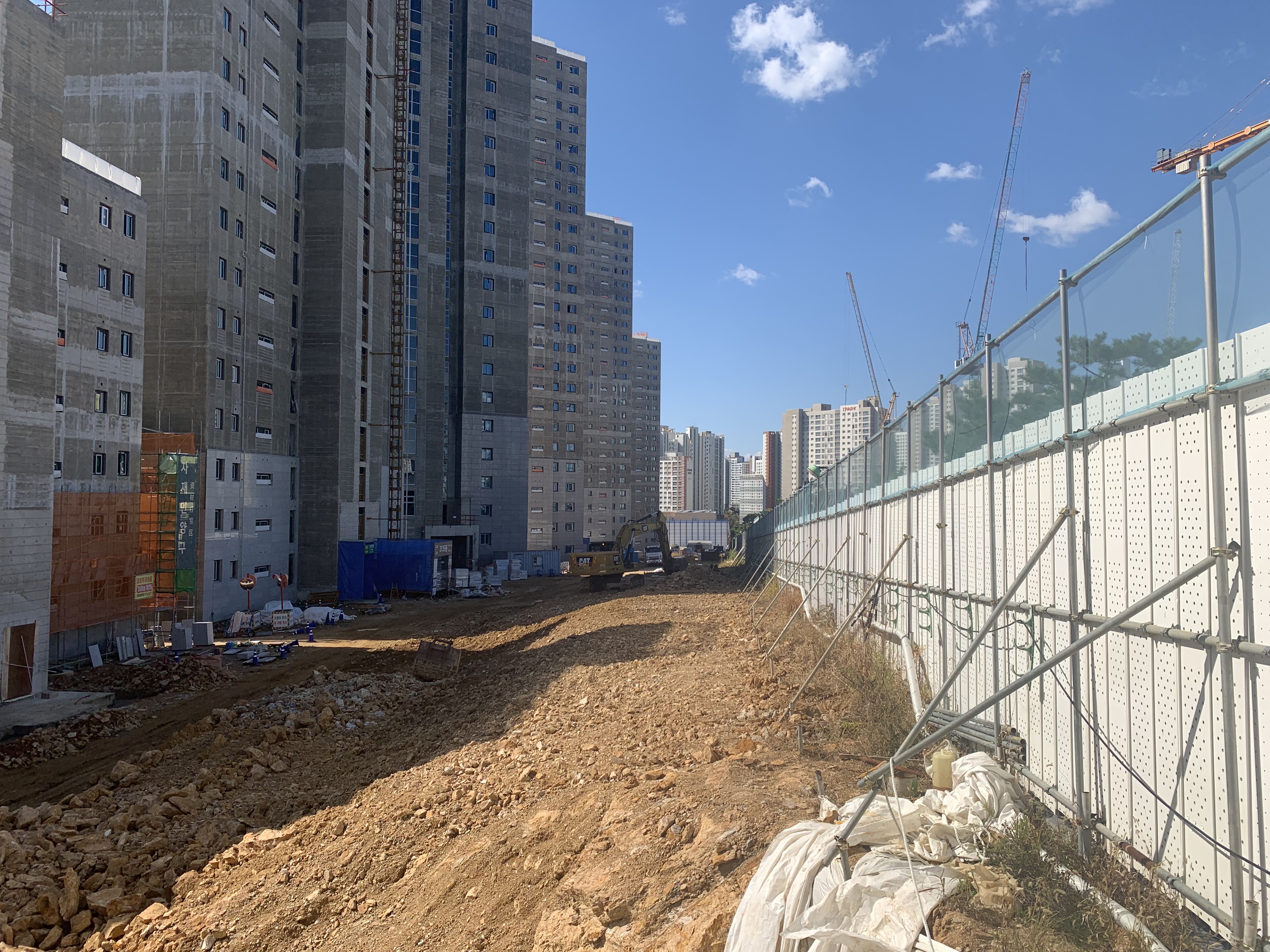 동측은 방음벽이 아니라 EGI휀스로 설치했다. 한참 석공사와 부대토목 공사 중