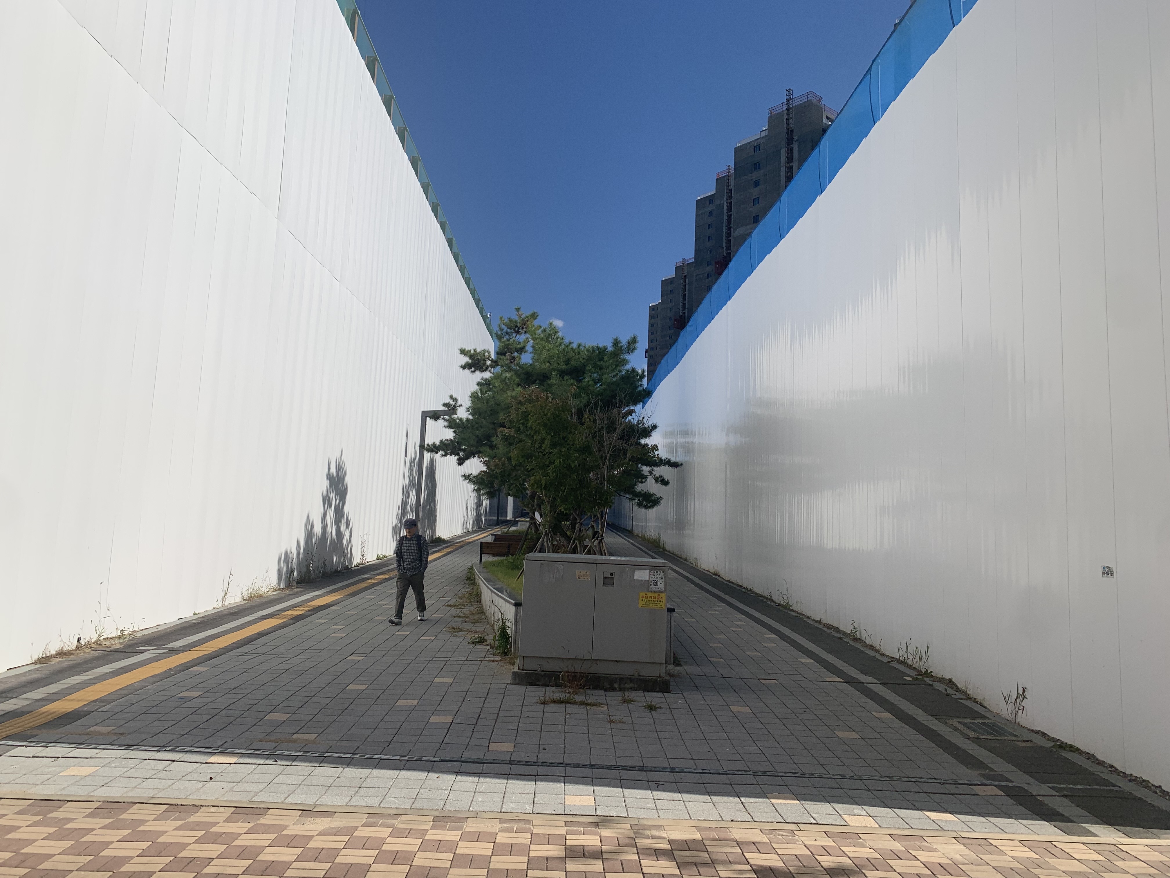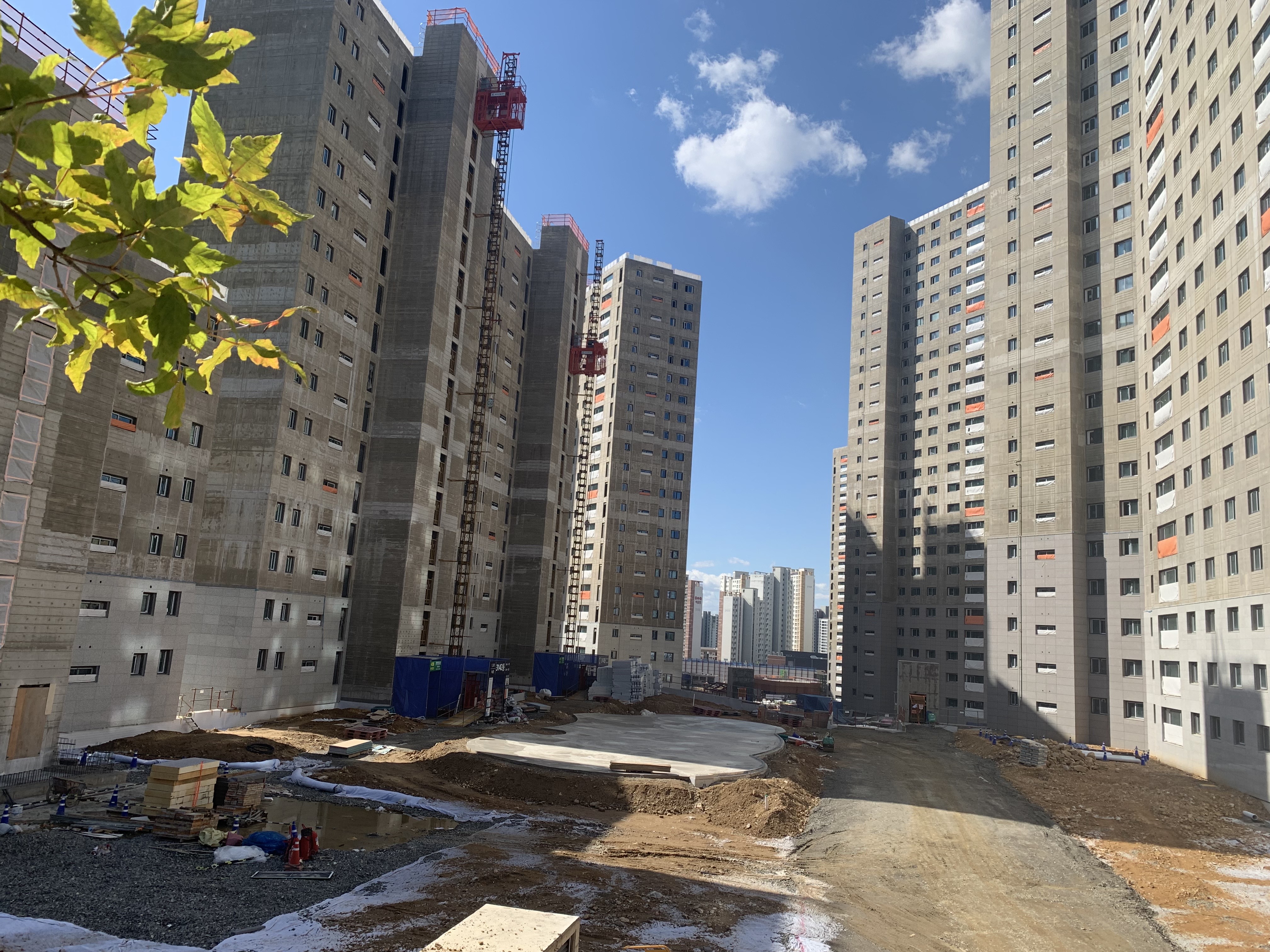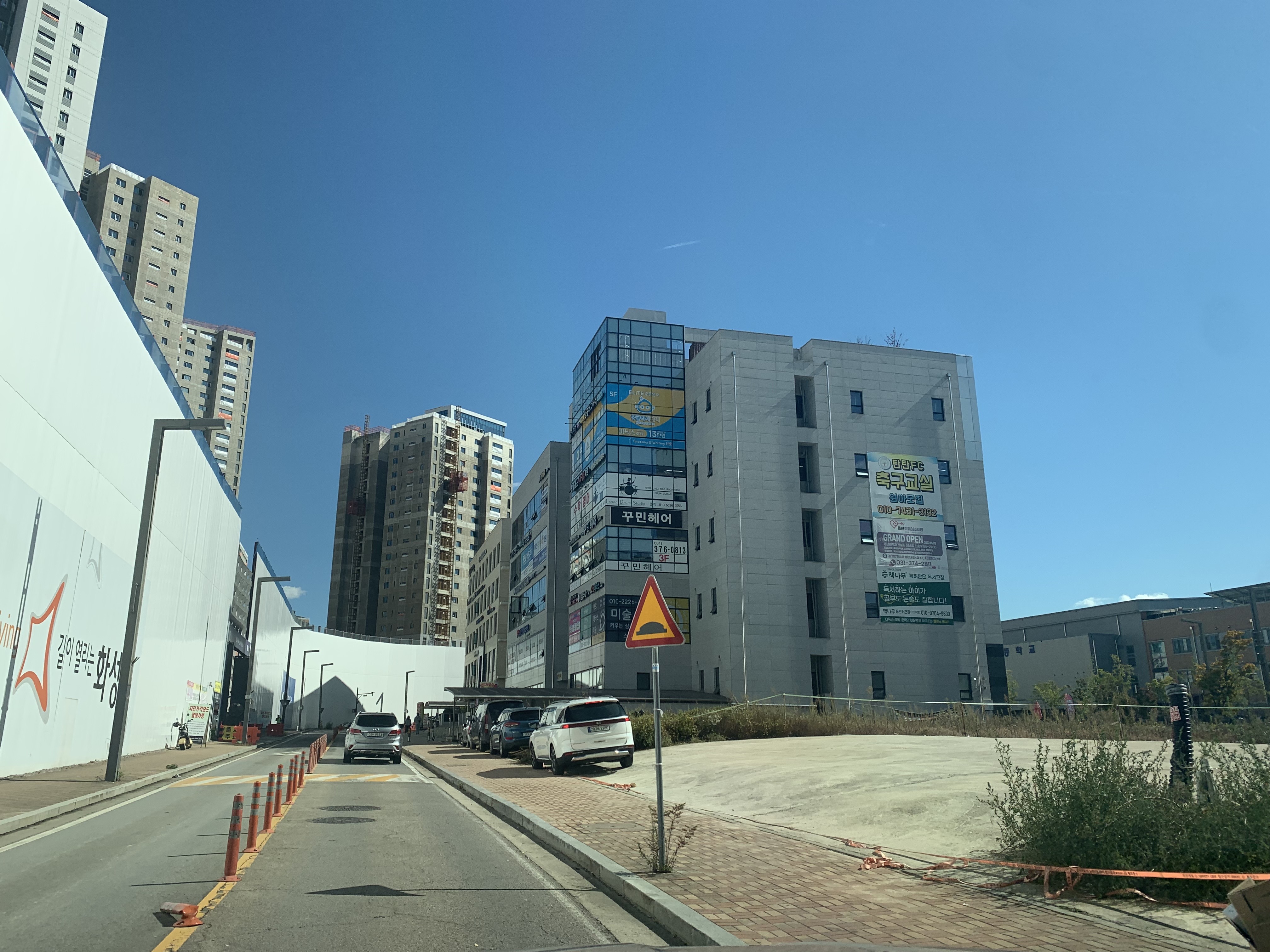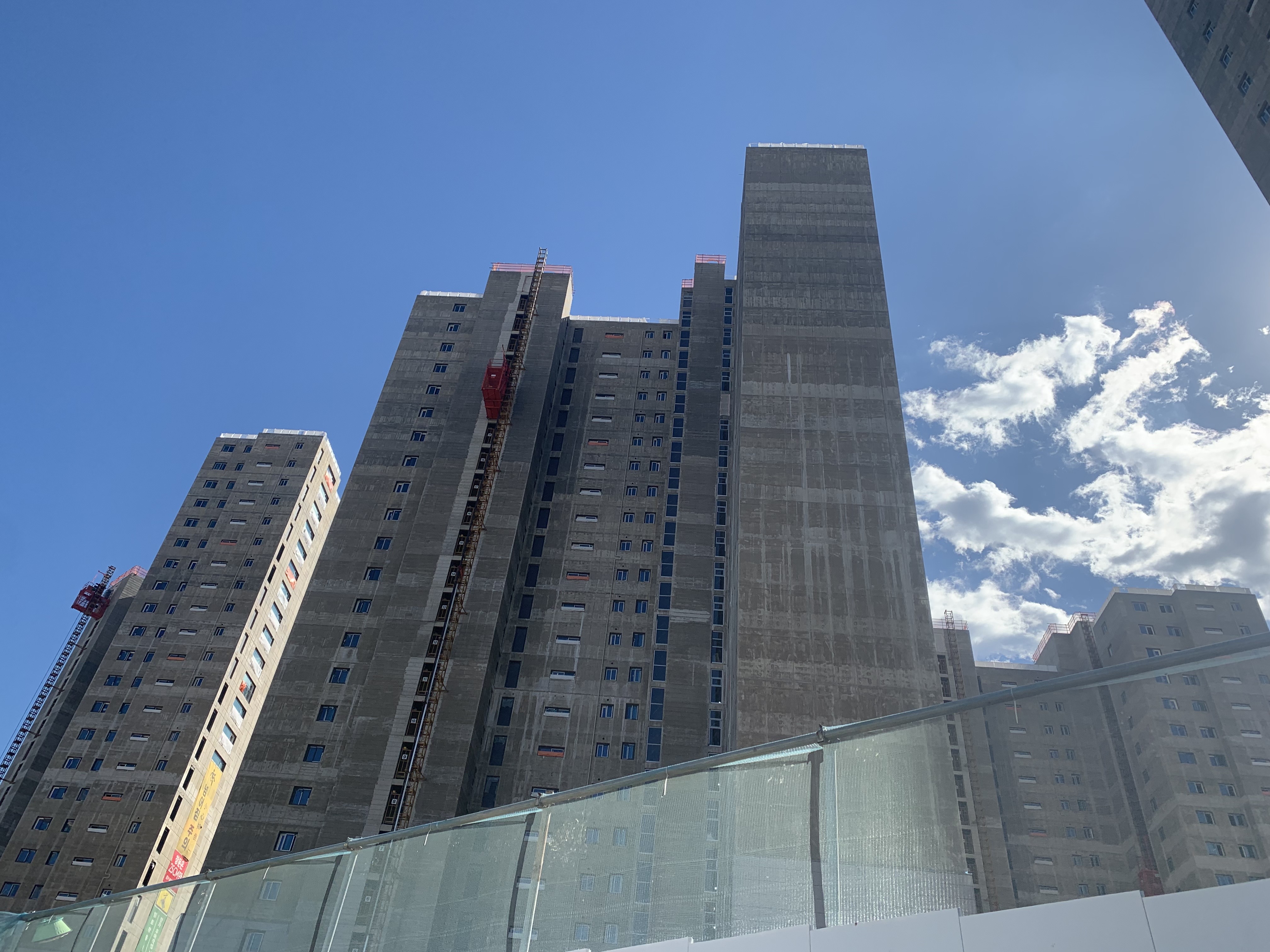 단지 남쪽으로 바로 앞에 상가가 있어서 그곳에 주차했다. 현장을 방음벽으로 둘러싸고 있어서 저층부는 보이질 않는다. 우선 골조는 끝났고 이제 마감작업이 한창 진행 중인가 보다.