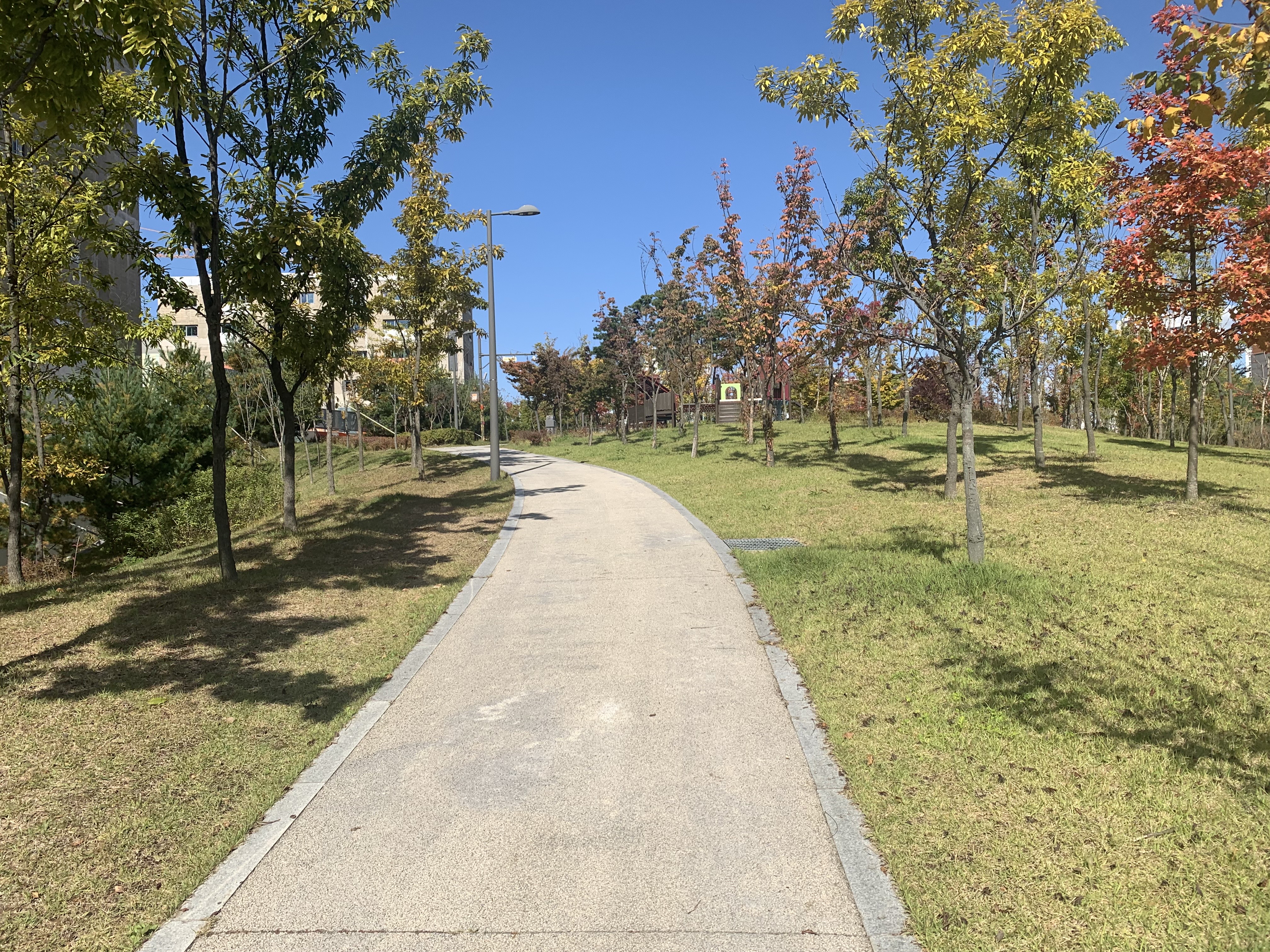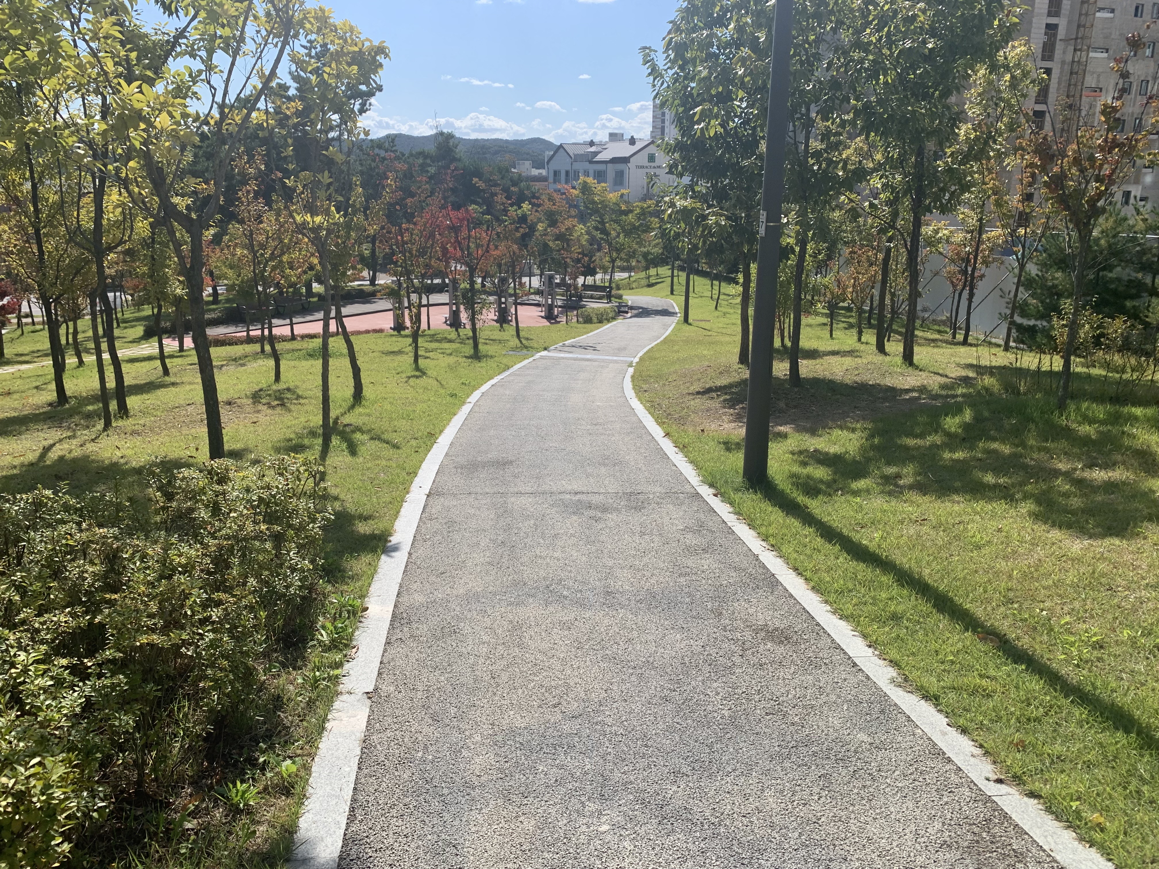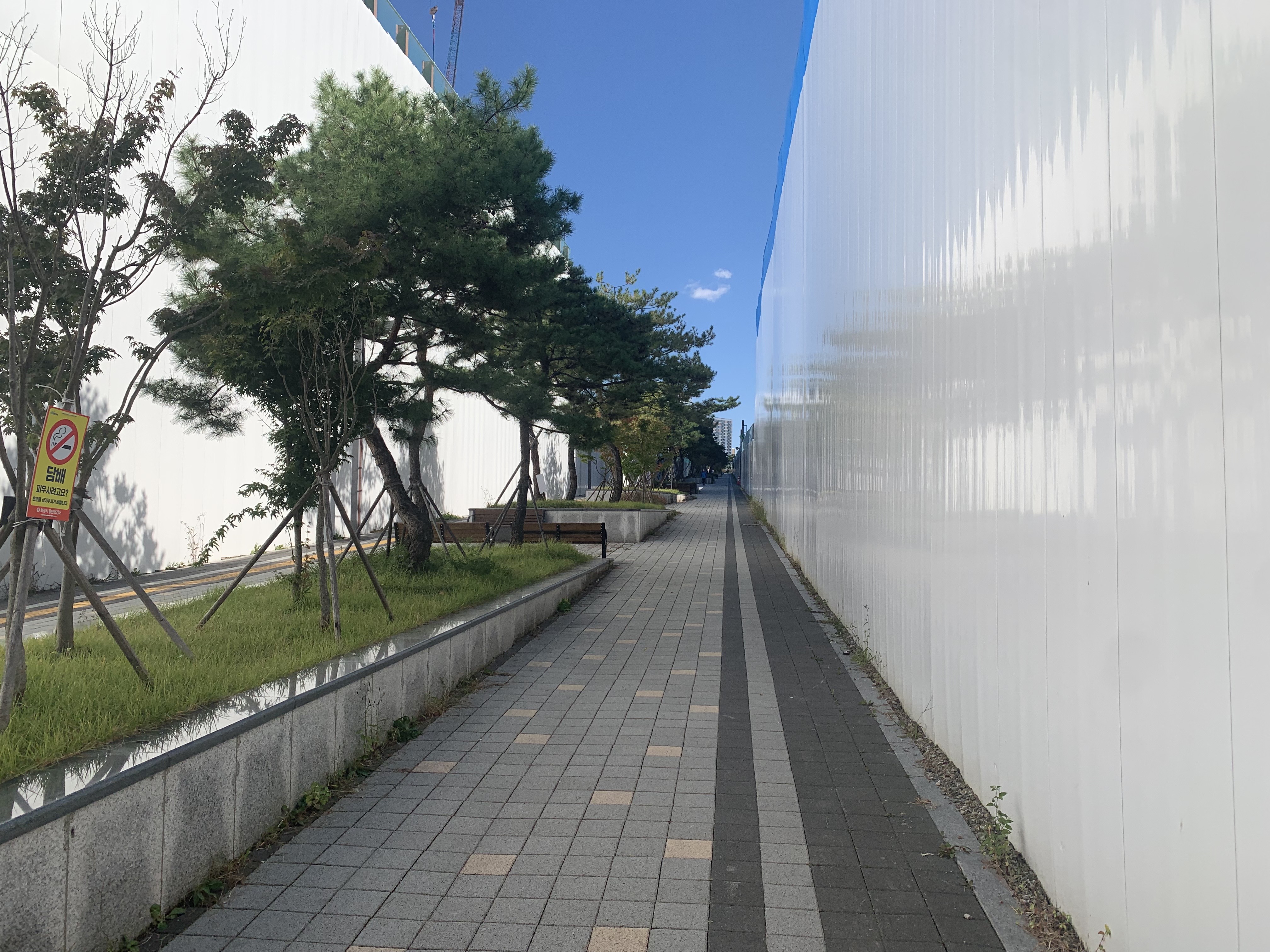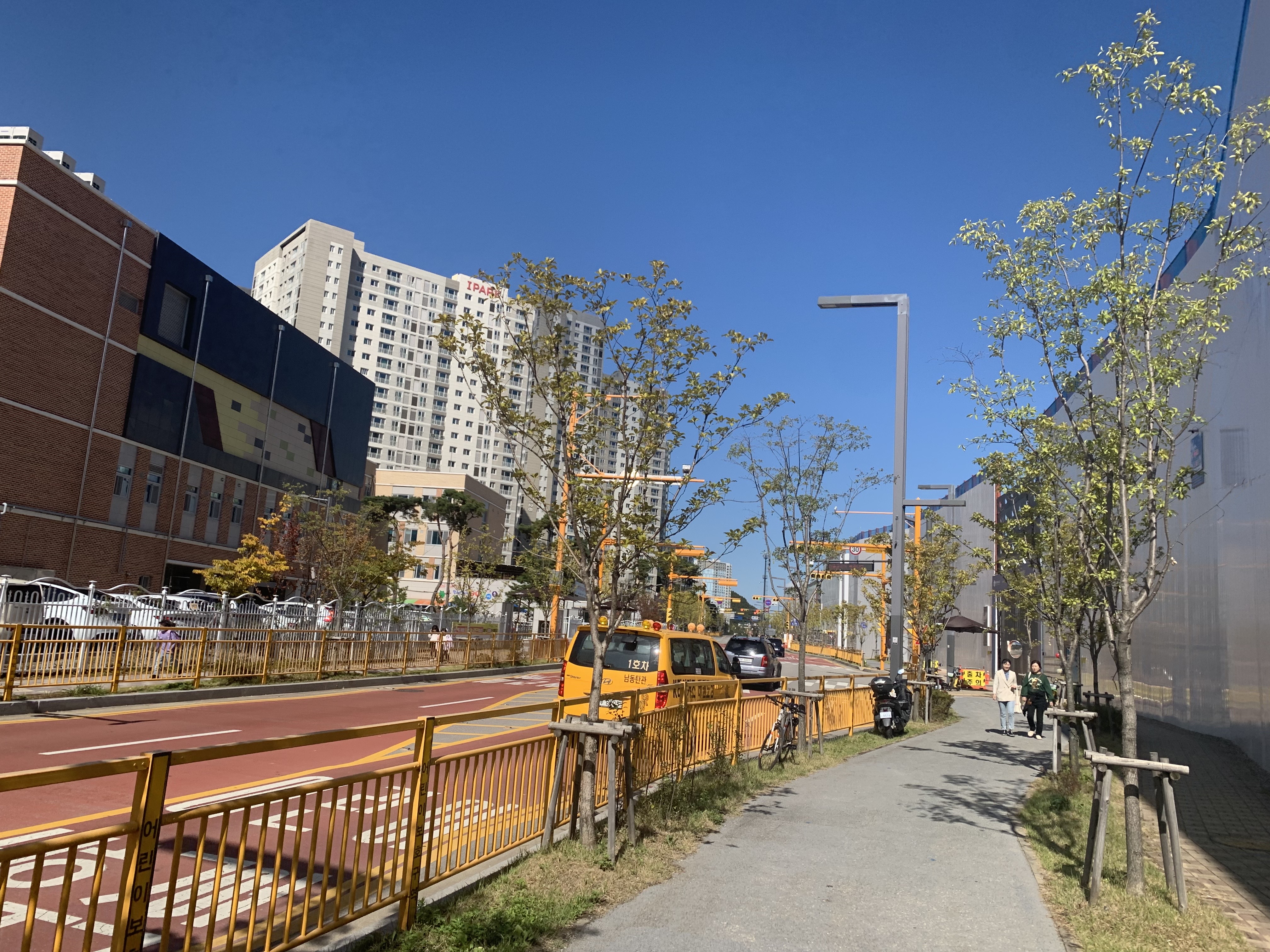 쭉 오르막길이다. 아직 양쪽 단지 모두 방음벽이 있어서 썰렁해 보이지만, 입주 후 조경과 어우러졌을 때 어떤 조화가 이뤄질지 궁금하다.
