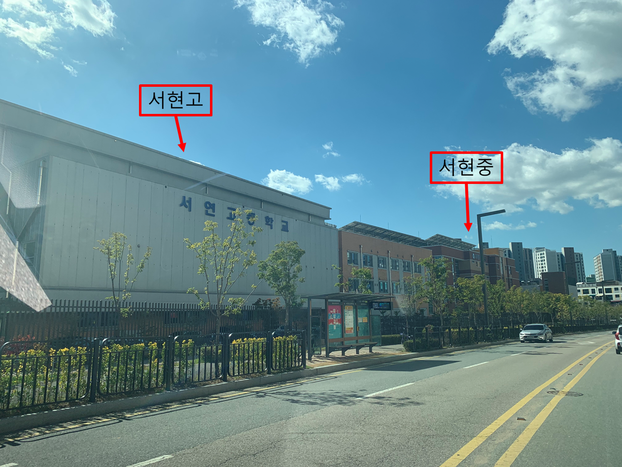 서현고와 서현중. 붙어있어서 중, 고등학생을 둔 두 자녀의 부모라면 마음이 편하겠다.