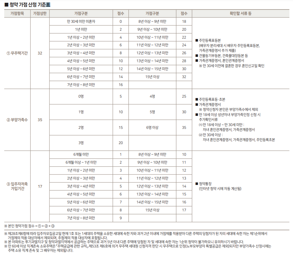 - 전용면적 85m2 이하 - 가점제 100% 우선