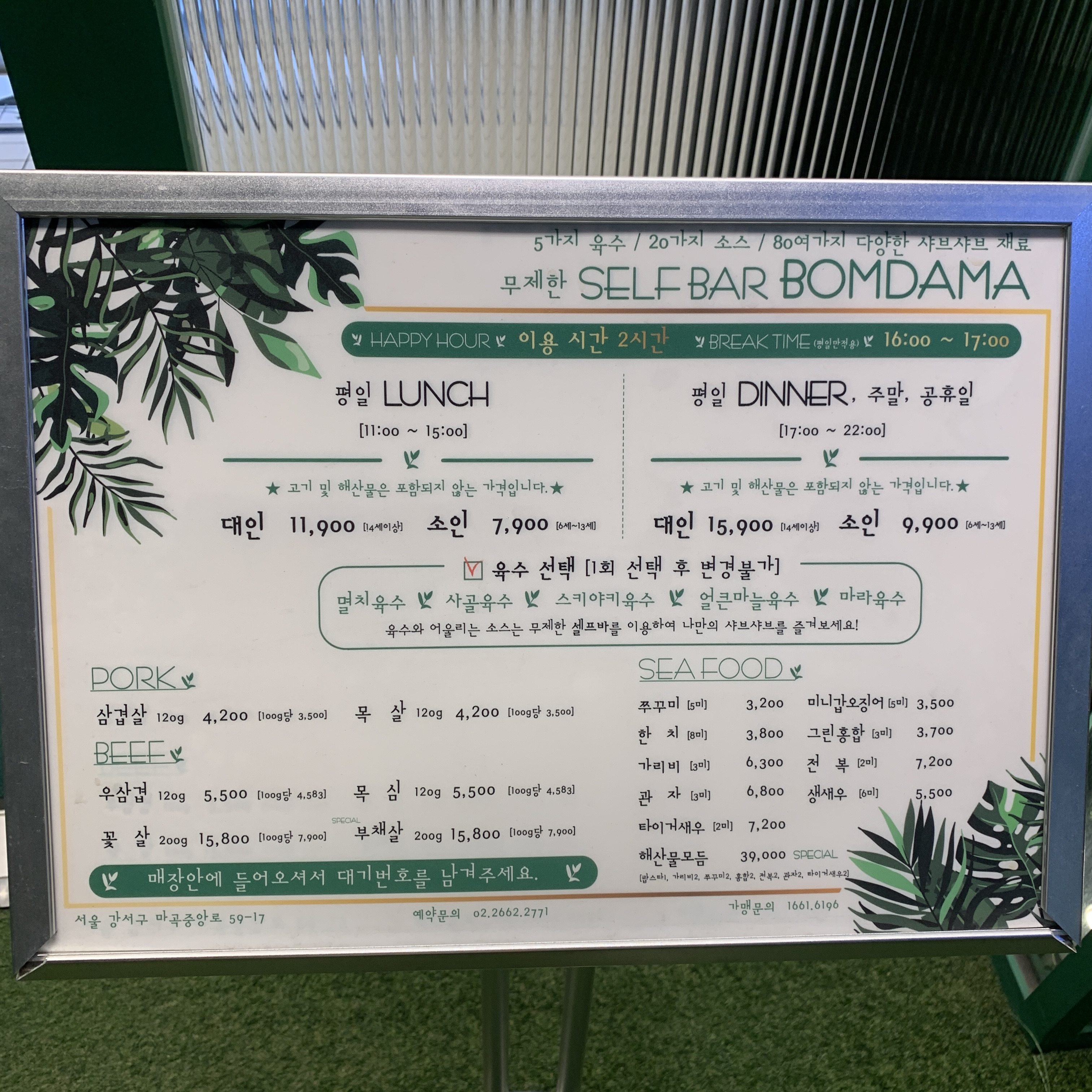 마곡에 다른 샤브샤브 전문점도 있지만 이곳이 인테리어도 괜찮고 음식 종류와 신선도도 괜찮아 보여서 이곳을 택했다.