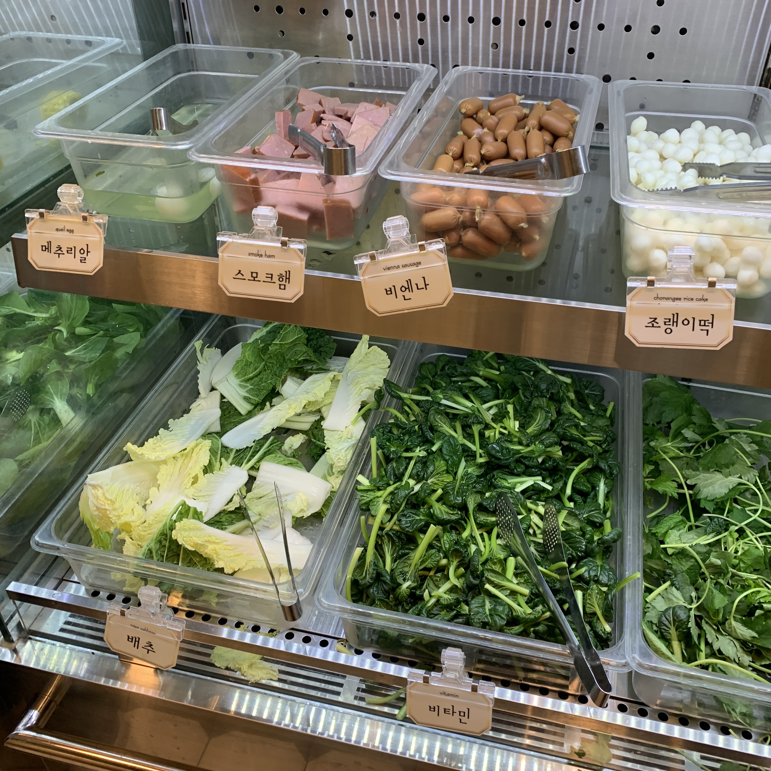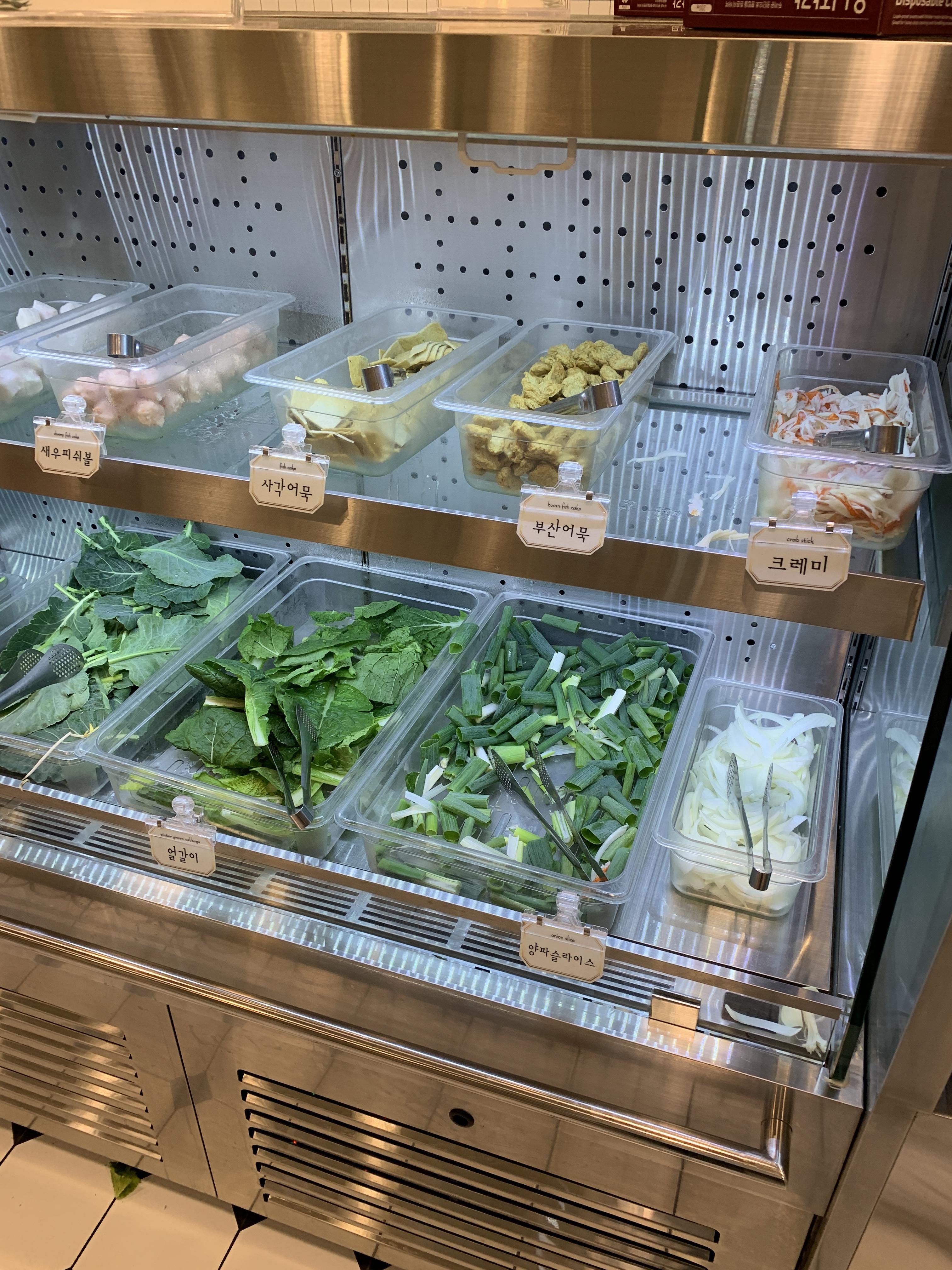 어묵/떡류 : 피쉬볼(새우, 문어, 연어, 카니), 사각어묵, 부산어묵, 쌀떡, 치즈떡, 고구마떡, 단호박떡, 조랭이떡