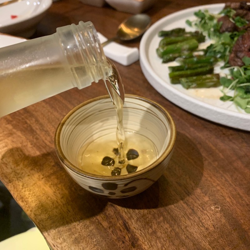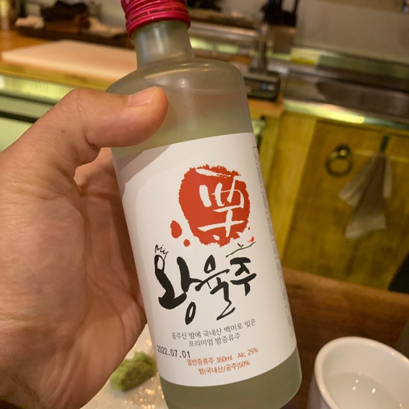 사장님께서 고기가 나오기 전에 먼저 한잔 마셔보라고 건네주신 송이주