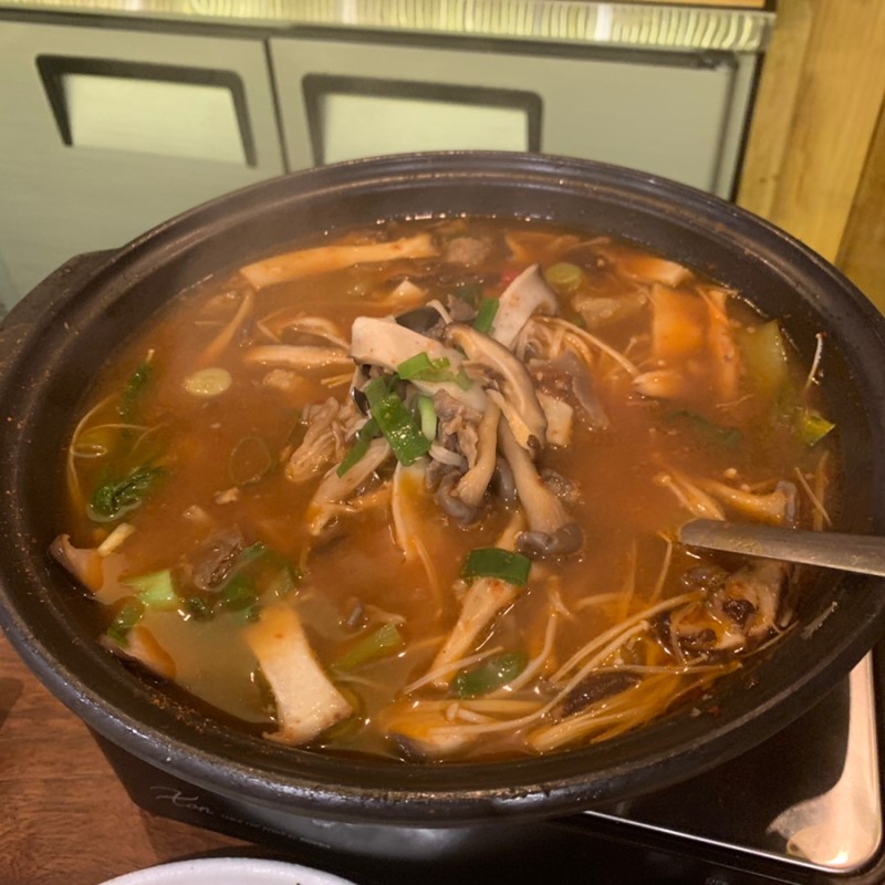한우와 버섯, 야채가 듬뿍들어가서 국물없이 건더기만 먹어도 좋지만