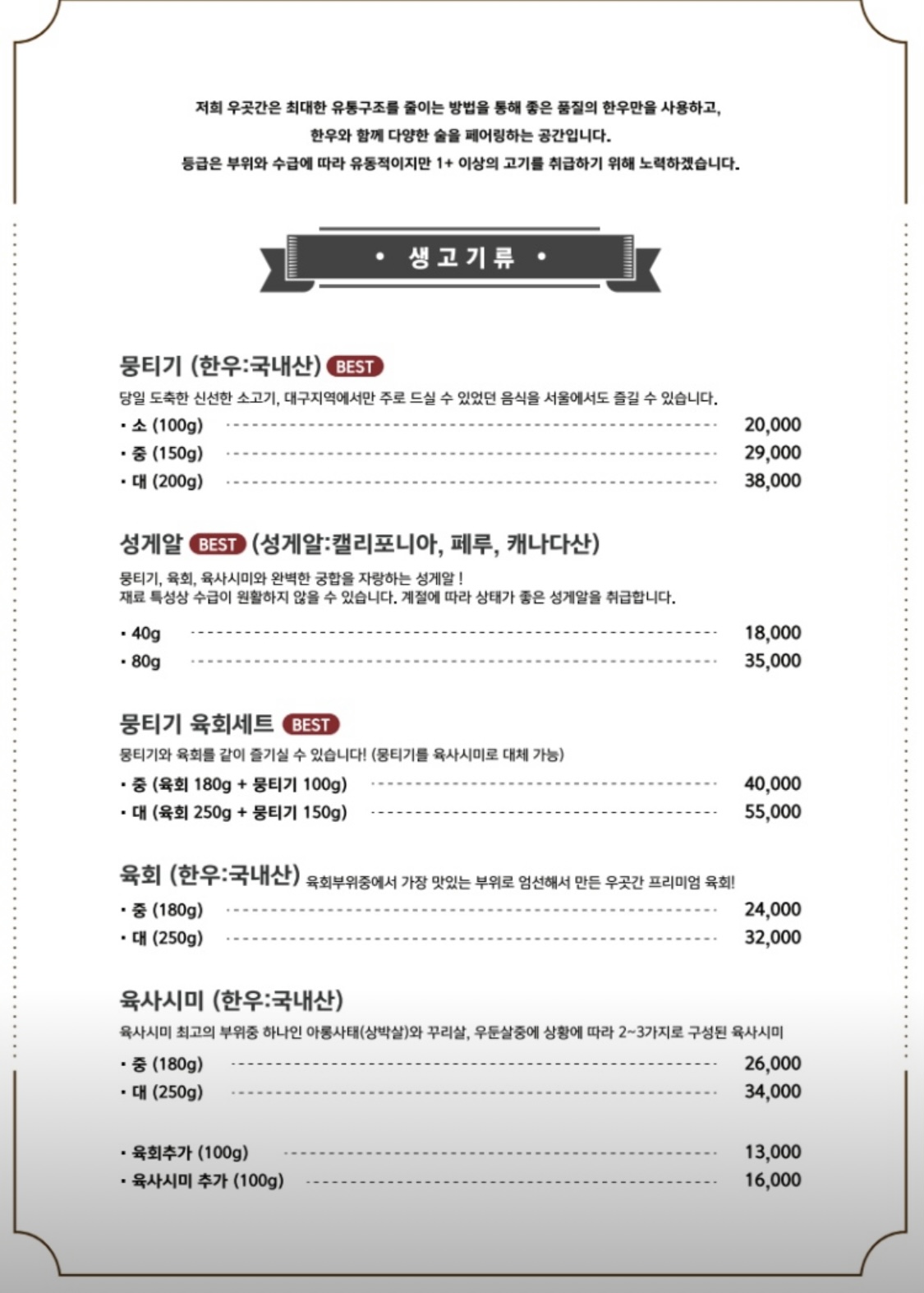 하지만 오늘은 서울에서 흔하지 않은 뭉티기가 땡겨서 왔으니 뭉티기로 가자