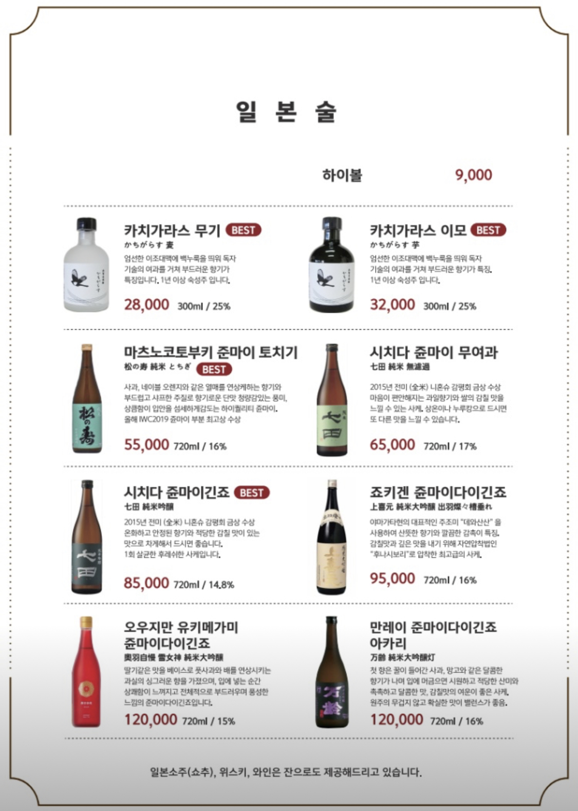 첫 잔은 하이볼(8,000원)로 스타트