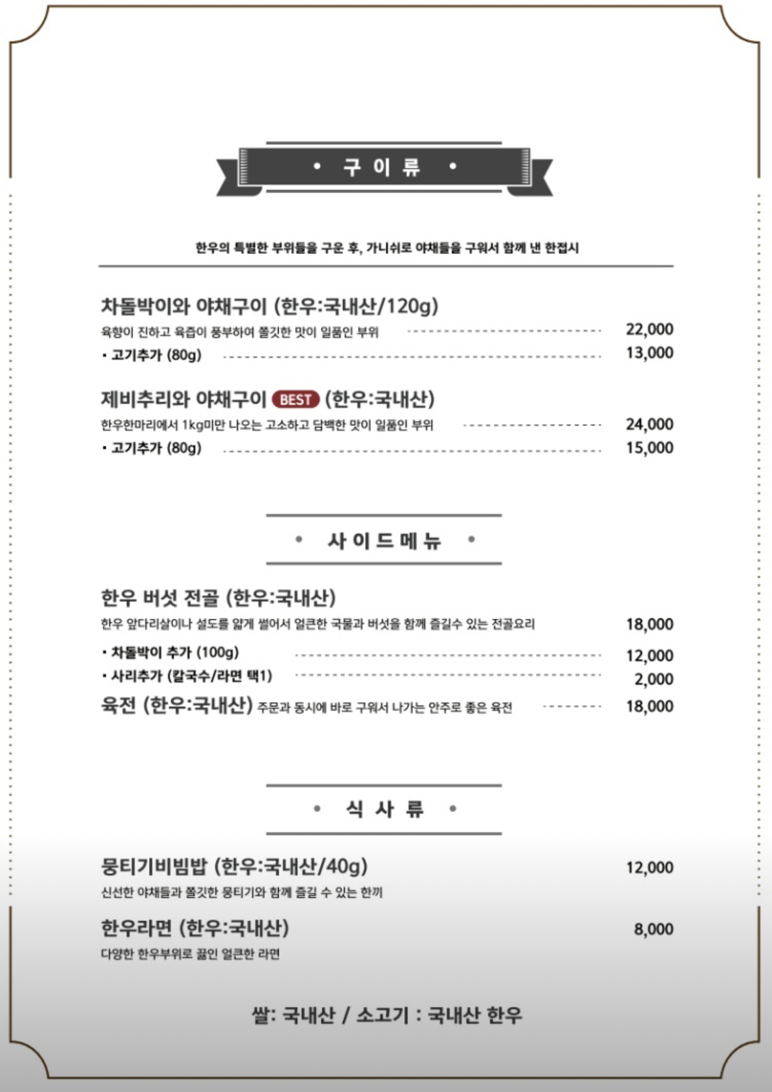 다음은 한우버섯전골 (18,000원)