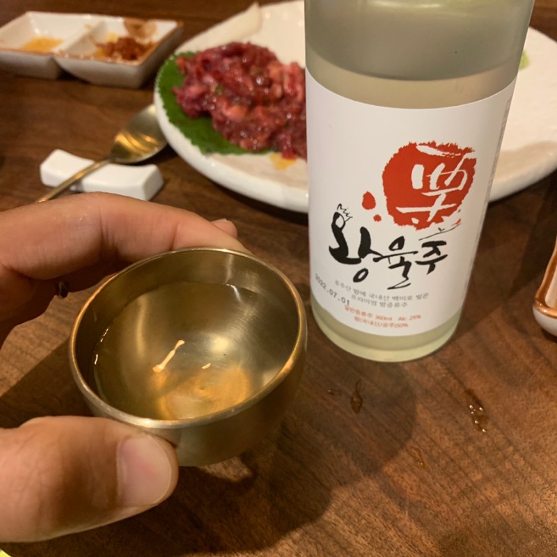 사장님께서 고기가 나오기 전에 먼저 한잔 마셔보라고 건네주신 송이주