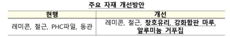 기존 자재값은 매년 3,9월 정기 고시를 하지만 하루하루 상승, 하락폭이 큰 자재들에 대해서는 따로 지정해 비정기 조정할 수 있는 제도가 있었다. 기존 비정기 조정 자재 4가지(레미콘, 철근, PHC파일, 동관)에서 PHC파일, 동관은 빠지고 추가로 3가지(창호유리, 강화마루, 알폼)를 포함시켜 총 5가지 주요 자재 주요 자재가 확대되었다.