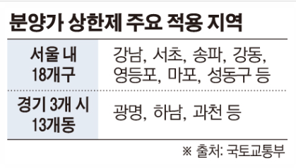 2019년 하반기부터 민간 아파트에도 적용하기 시작했다. 서울 18개 구, 경기 3 개시 지역에 분양가 상한제를 적용하였고 계도기간을 거쳐 20년 07월 29일부터 본격적 시행했다. 적정 수준의 가격으롯 부담 없이 내 집 마련을 할 수 있는 장점이 있다.
