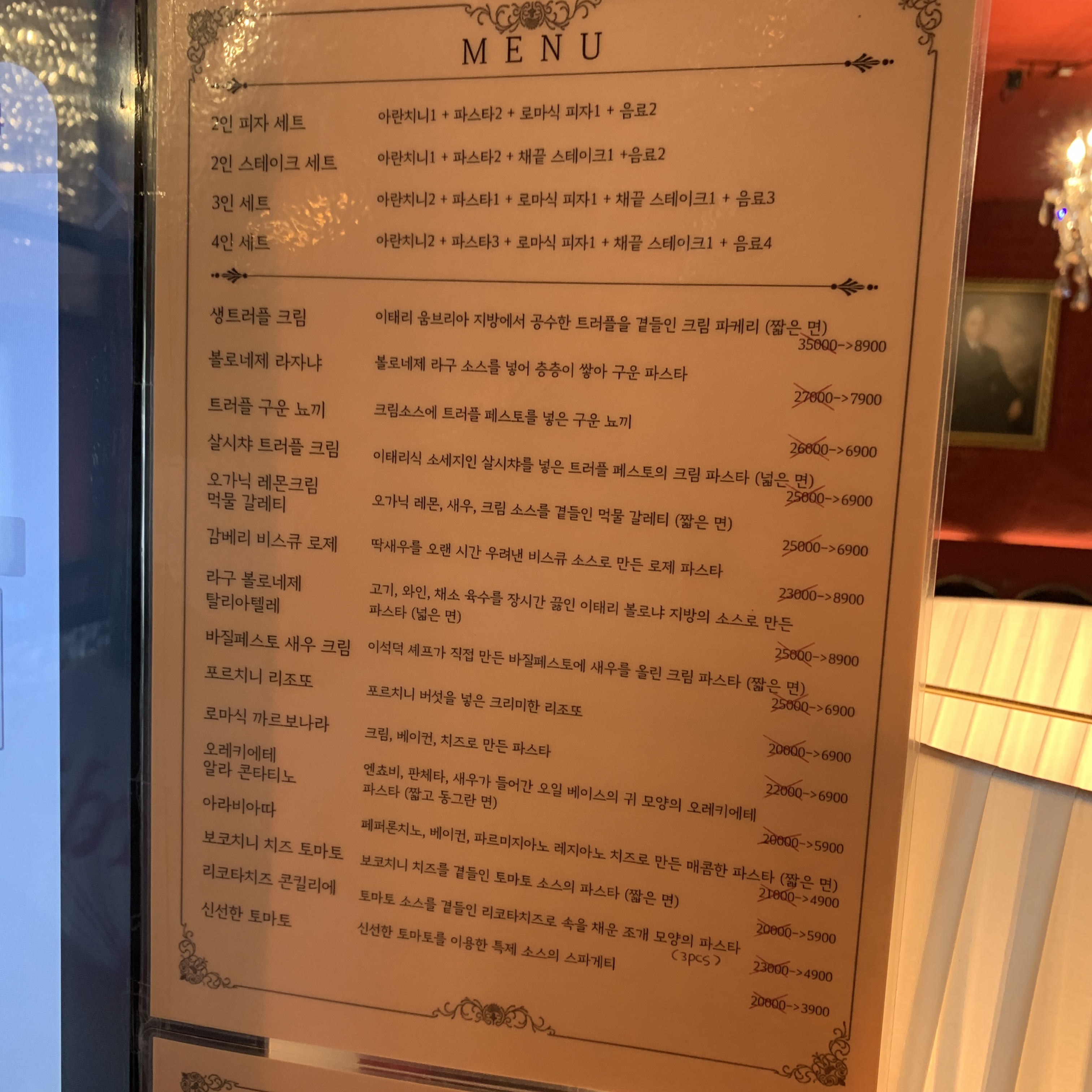 파스타가 전부 만원이 안넘는다.