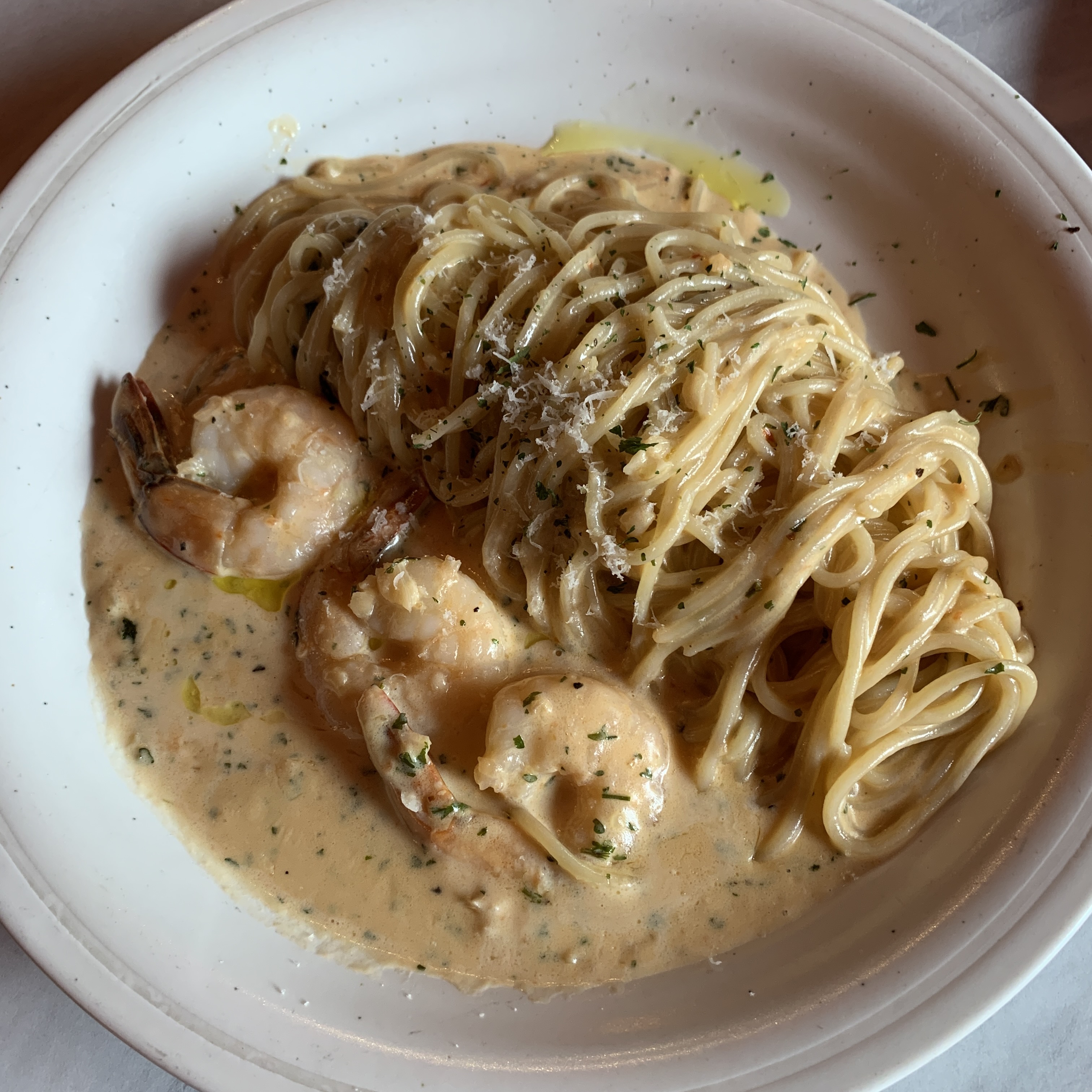 만원아래 파스타인데 통통한 새우가 3개나 들어가있다