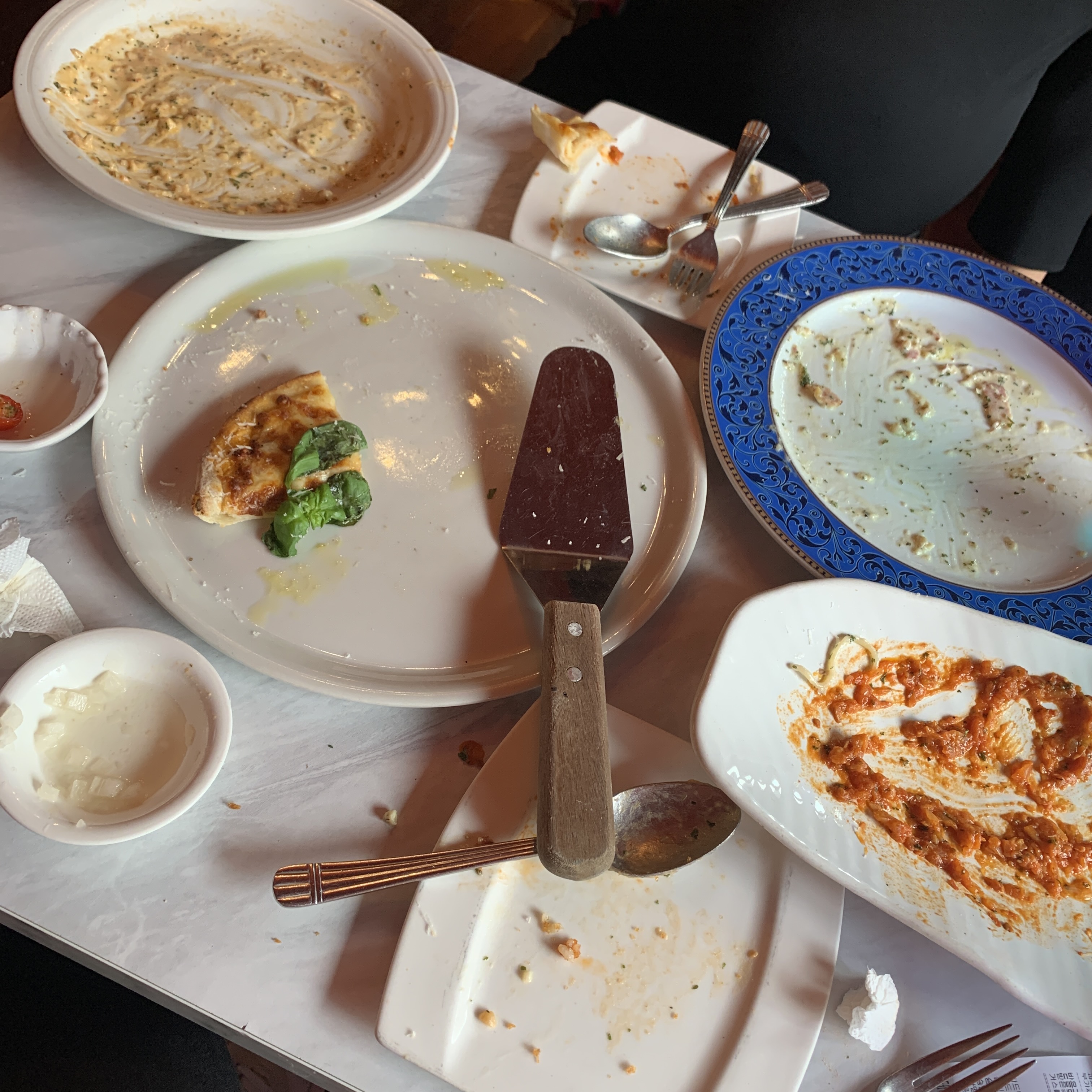 마지막 피자 한조각은 도저히 못먹어서 남김.