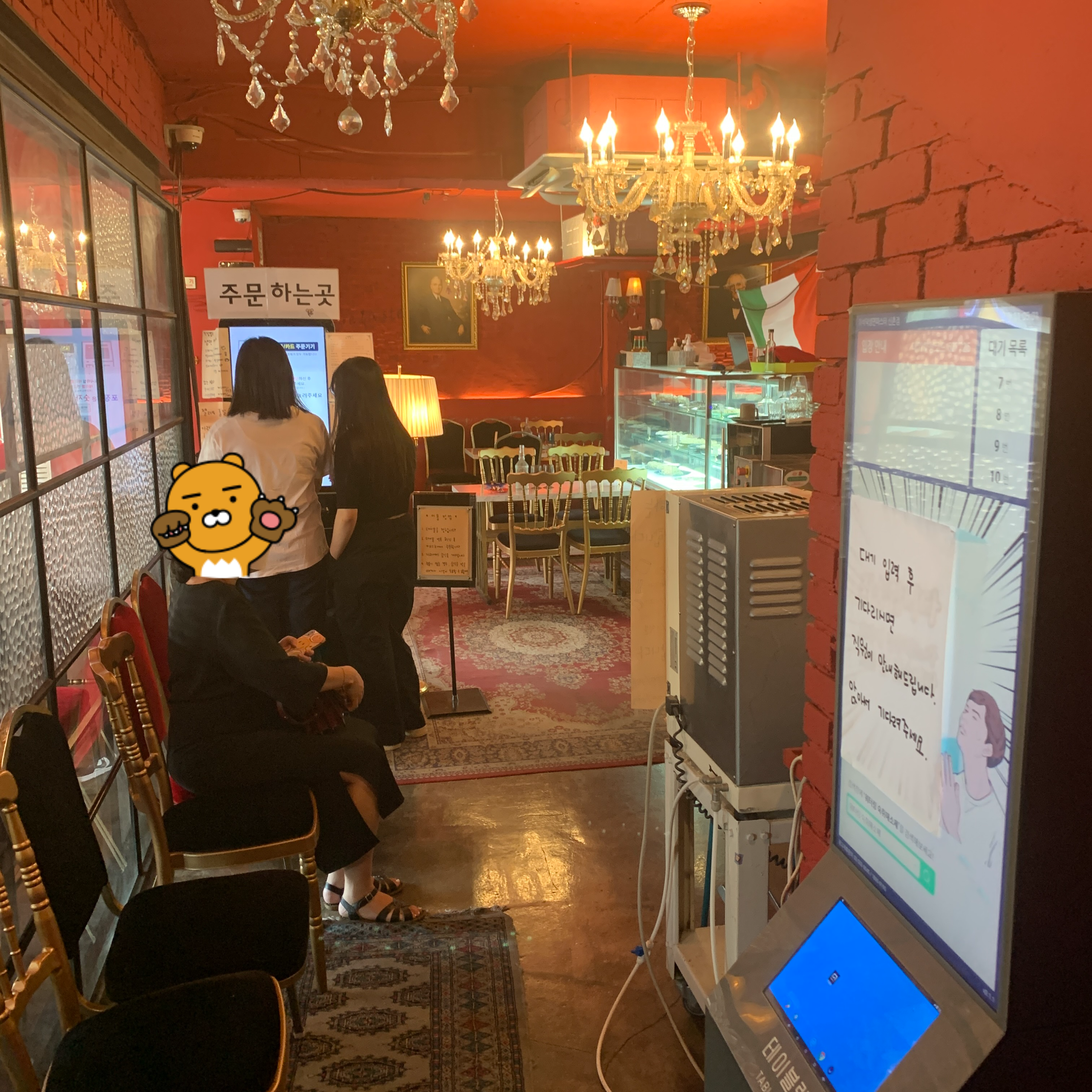 가게 들어가면 대기의자와 주문머신이 있다.