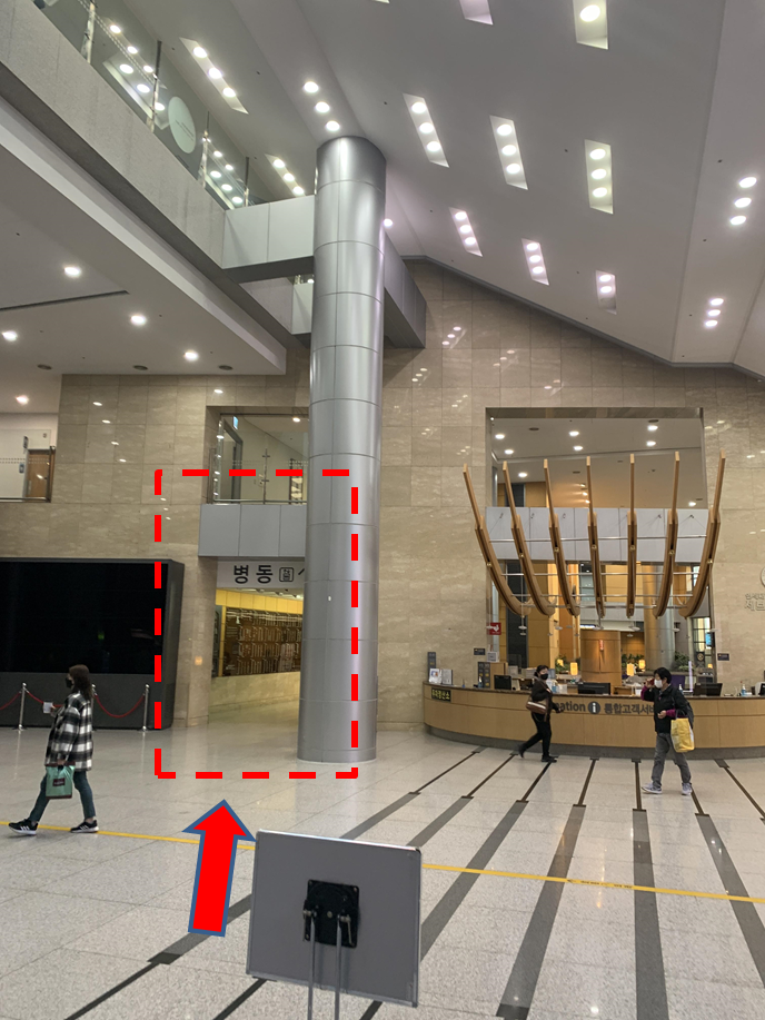 본관 지하주차장에 주차하고 3층 로비로 올라간다.