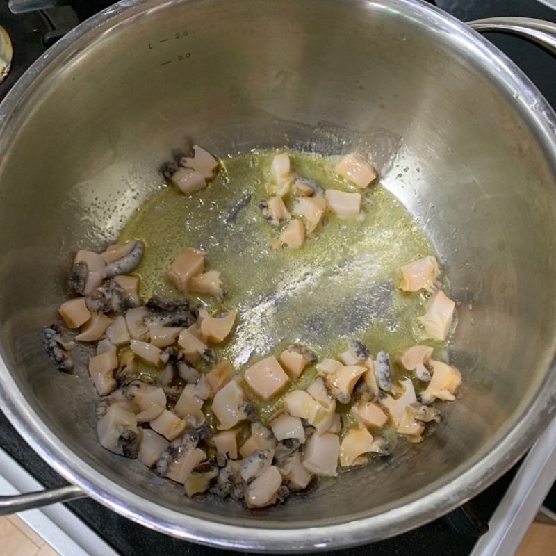 들기름에 전복을 볶아주다가