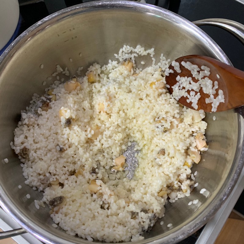 물에 30분정도 불린 쌀을 넣고 같이 볶아준다.