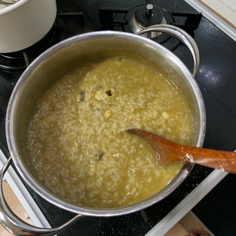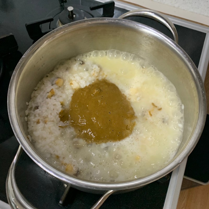 곱게 갈린 전복 내장은 곧바로 냄비에 투하 !