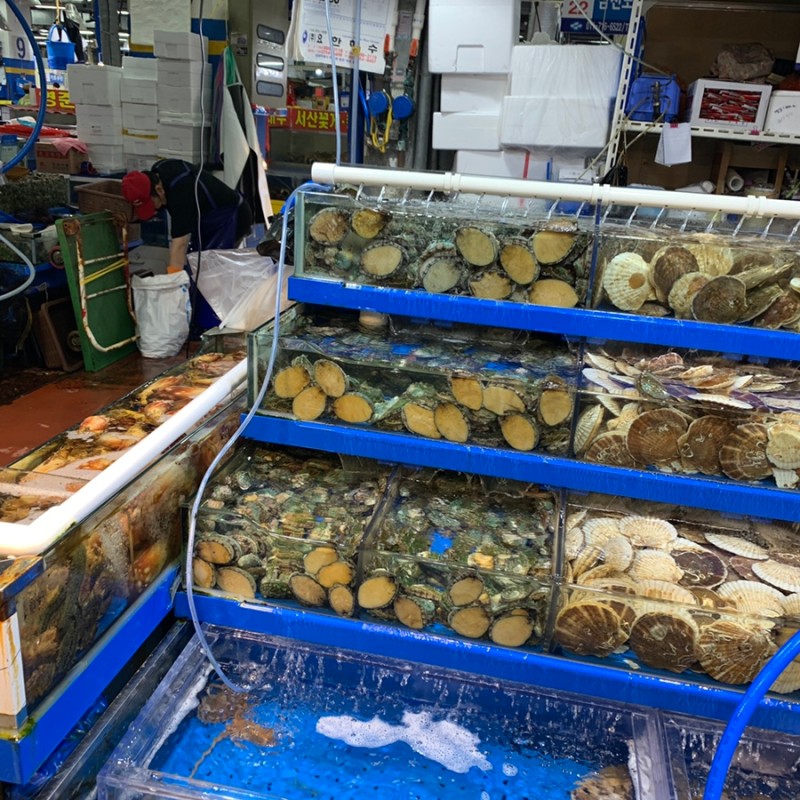 싱싱한 전복을 구하기 위해 농수산물시장으로 이동했다.