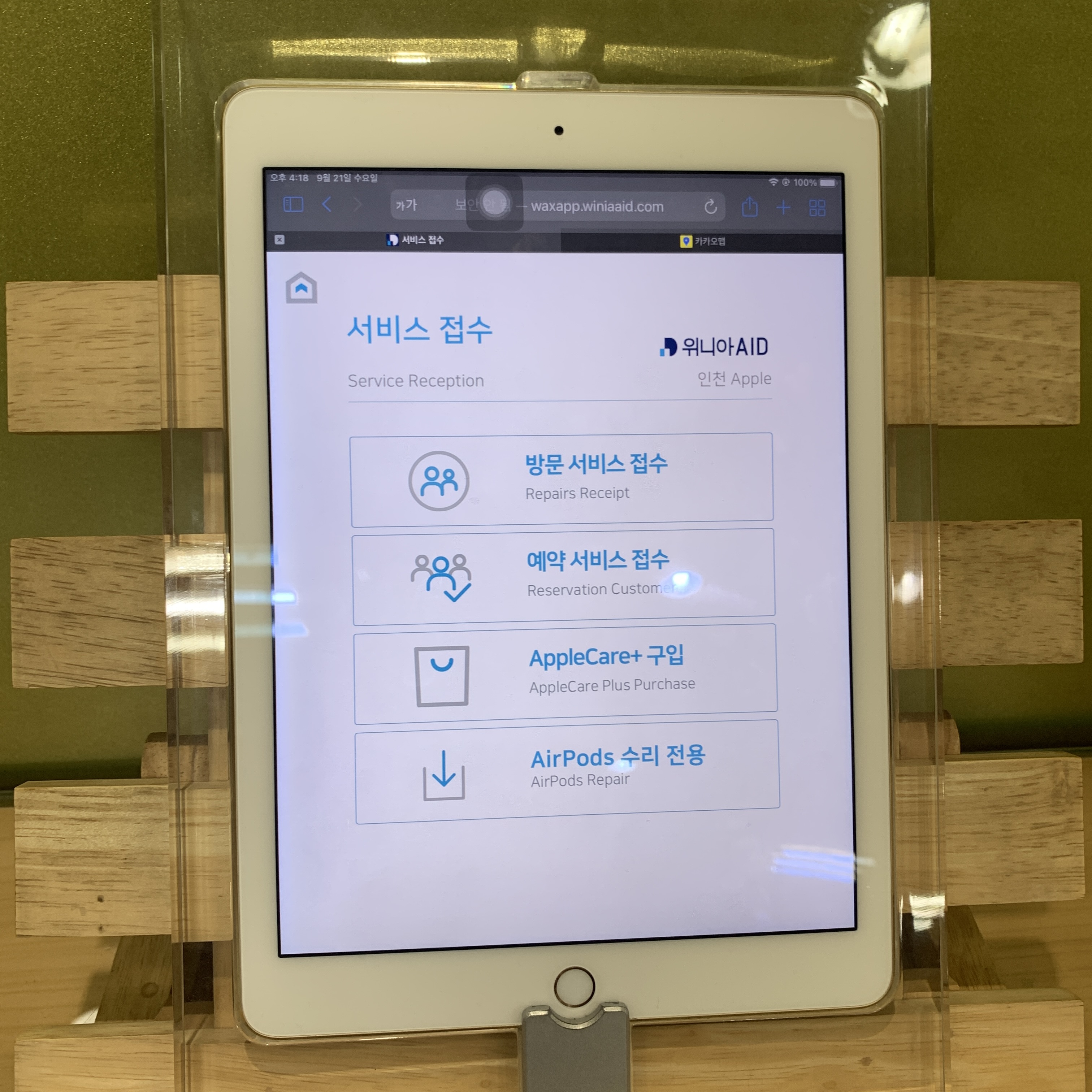 내 증상을 설명하였으나 정품 등록이 안됐고, 애플케어플러스 가입이 안됐다니 문제가 될 수 있다고 한다.