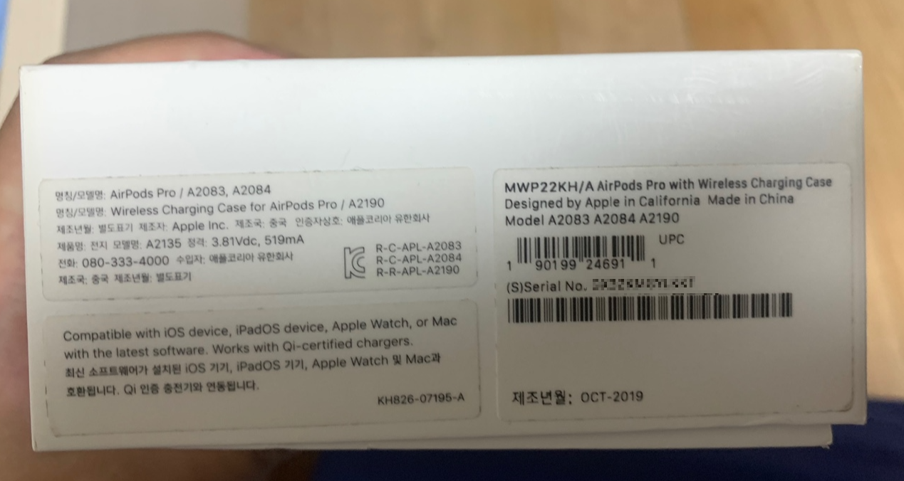 그래서 집에 숨어있는 에어팟박스를 찾았는데 제조년월이 붙어있는 걸 확인했다.