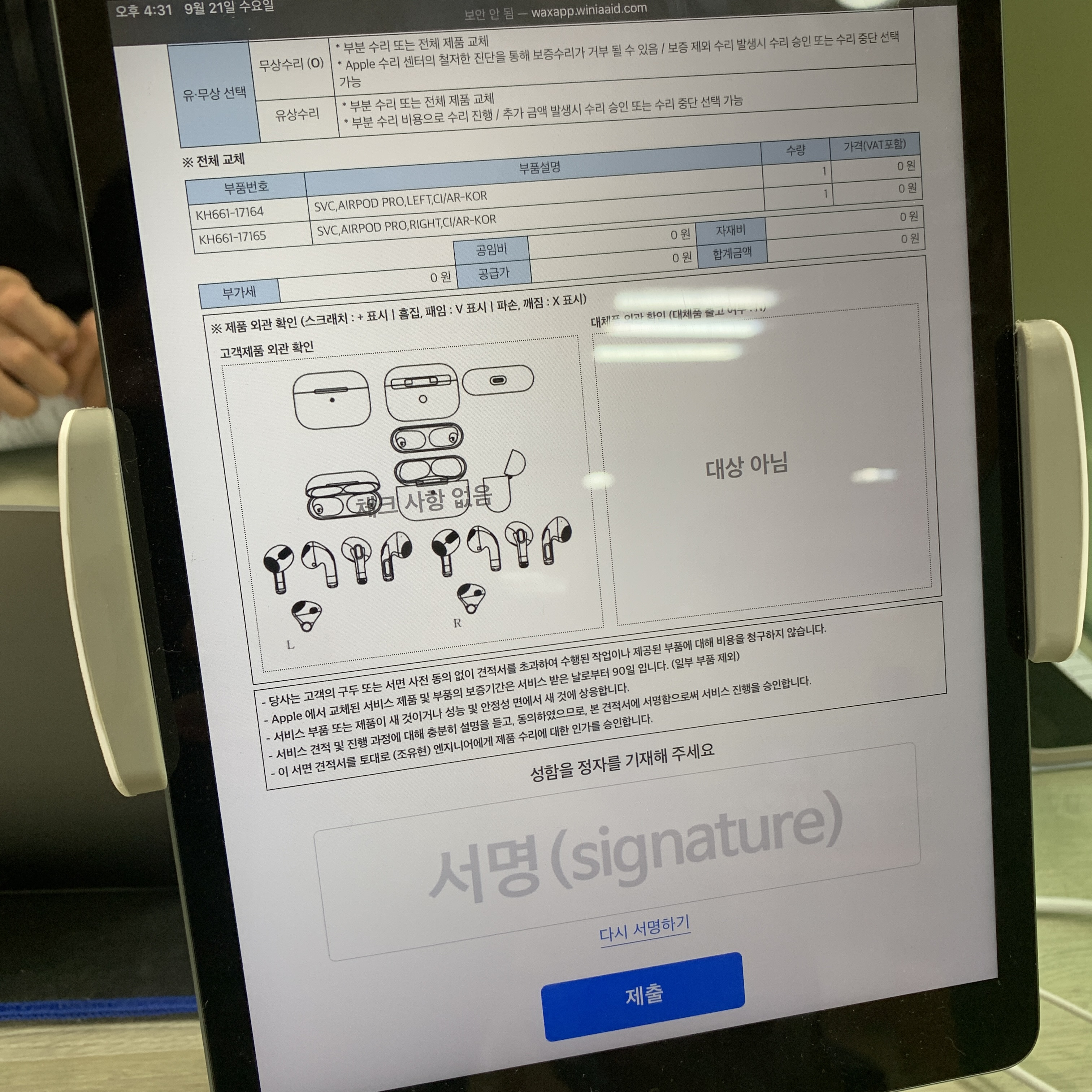 그렇게 받은 에어팟프로 리퍼 인수증.