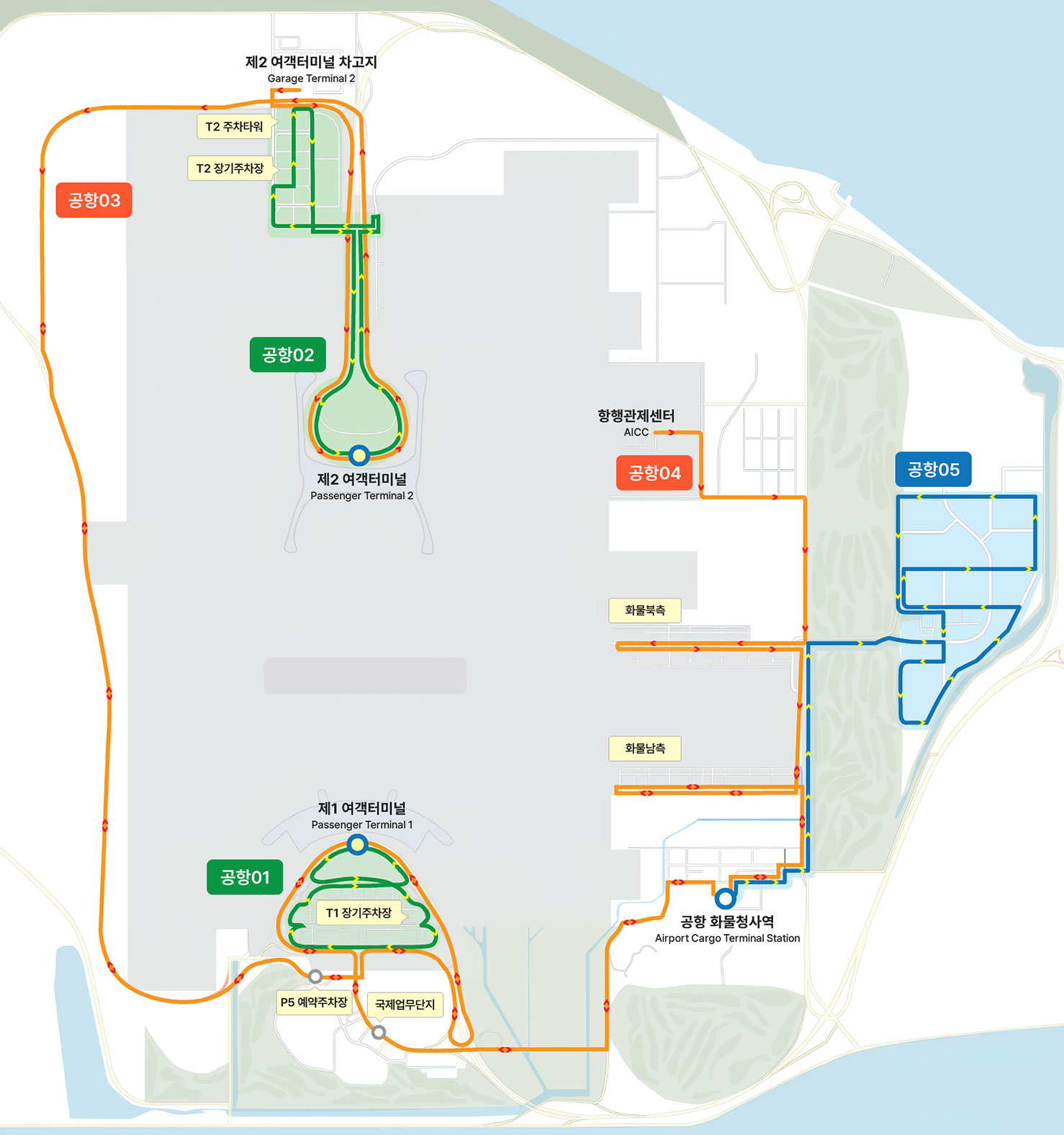 - 운행 구간: 장기주차장 ↔ 단기주차장 ↔ 제1터미널