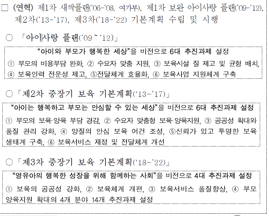 - '설립 주체' -> '수행 기능' 중심으로 공공보육 범위 확대, 재구조화