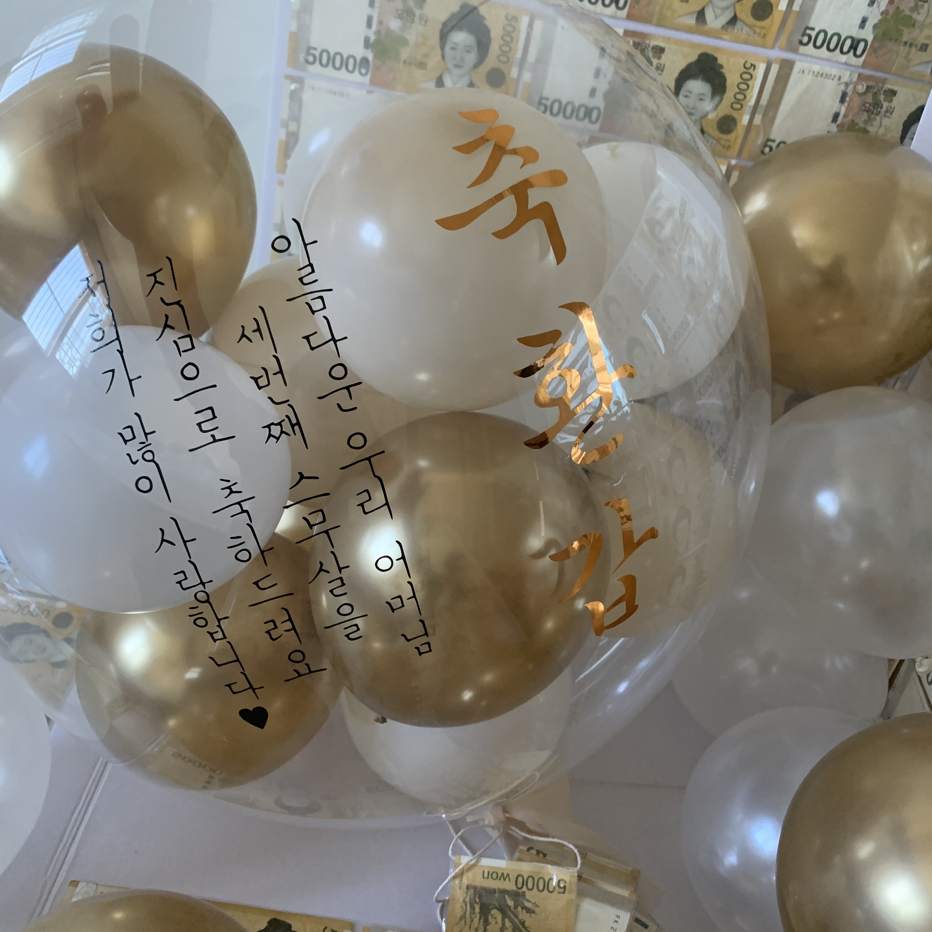 그리고 그 안에는 헬륨 풍선이 있고, 풍선에는 축하 멘트를 적을 수 있다.
