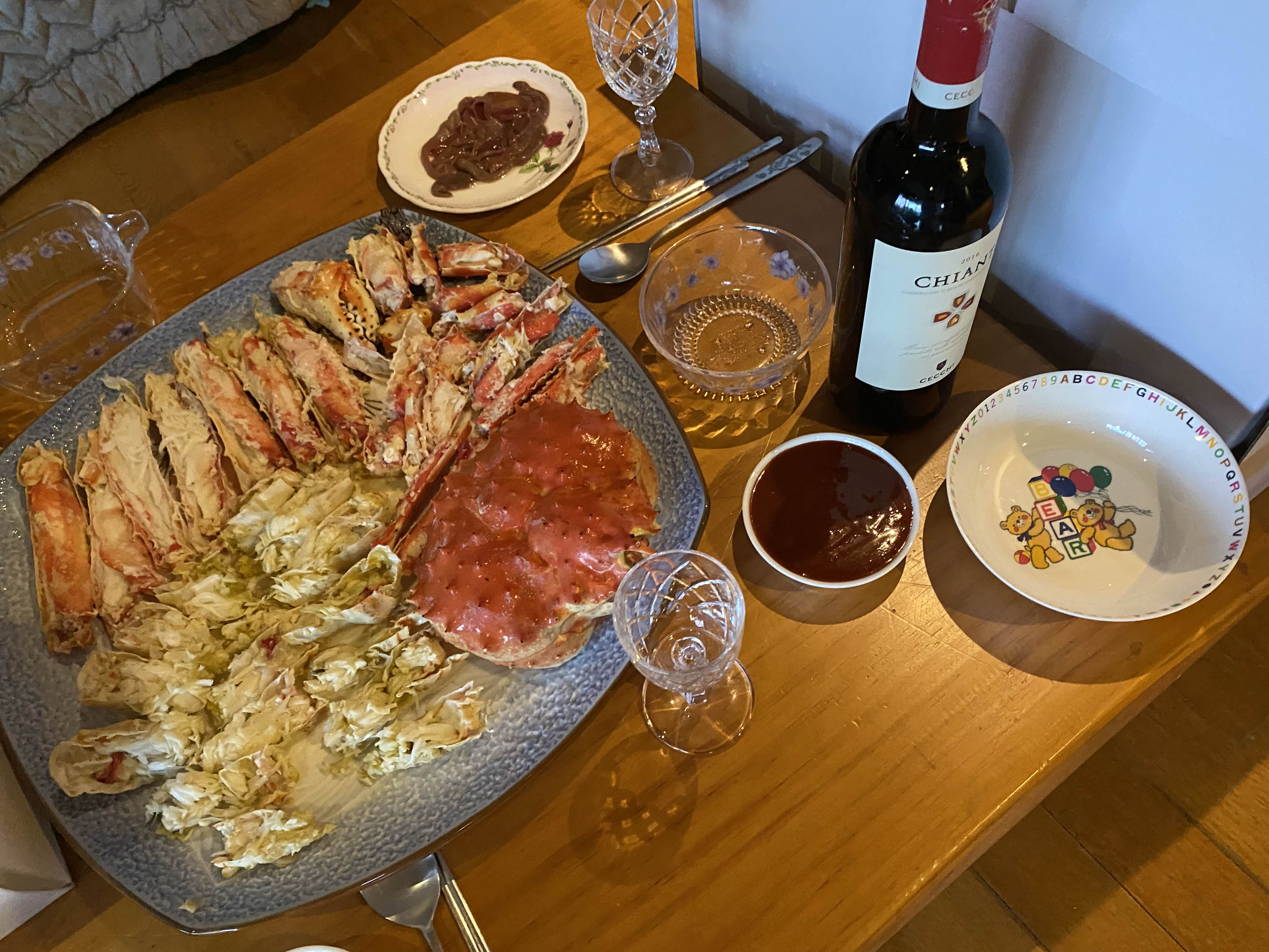 환갑상 분위기와 맛을 내기 위해 나는 매번 킹크랩을 산다.