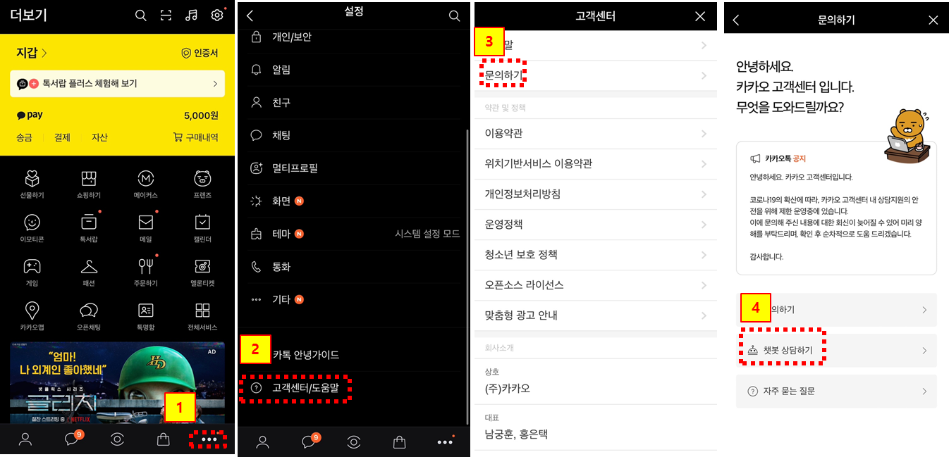 문의 접수하고 답장이 언제 올지 몰라 상담원과 직접 대화를 하고 싶었다. 카카오톡을 통해서 바로 상담원과 대화 연결이 가능하다. 챗봇과 대화하며 웬만한 궁금증에 대한 해답은 받을 수 있지만, 나는 직접 상담하고 싶기에 상담원과의 대화를 신청했다. 연결방법은 아래 사진을 참고해서 진행하면 되고 간단하다.