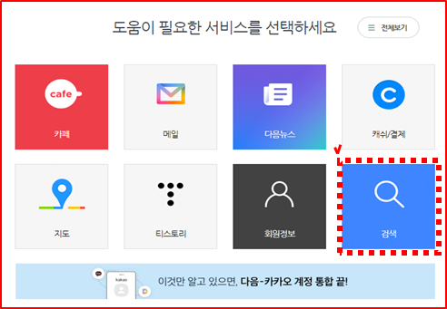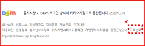 다음 홈페이지에 들어가서 스크롤을 맨 아래로 내린 후 고객센터를 클릭한다