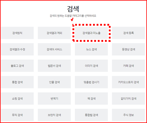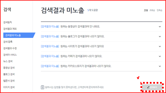 그 다음 도움이 필요한 서비스에서 검색 -> 검색 화면에서 검색결과 미노출 -> 문의하기