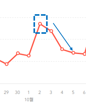 9월말에 티스토리를 시작하고, 시간될때마다 열심히 티스토리 블로그에 포스팅하며 애드센스 승인을 기다리고 있었다. 그런데 10월 2일이 지나고 갑자기 하루 방문자수가 확 줄었다. 1일1포스팅을 꾸준히 했는데도 불구하고 새로 올린 포스팅은 조회수가 계속해서 0이고 나아지질 않았다.
