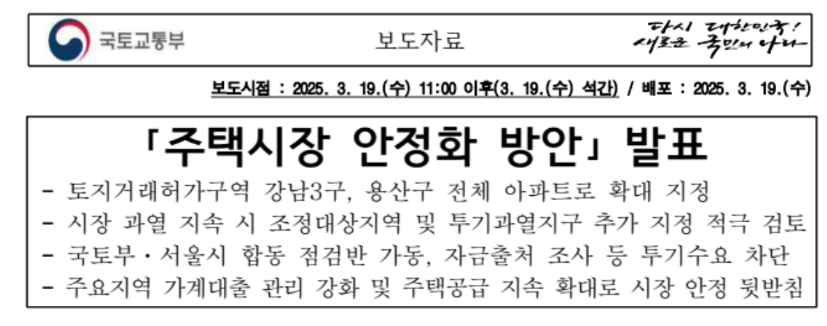 2025년 3월 정부 발표에 따르면, 서울 및 수도권의 주요 지역을 중심으로 토지거래허가구역이 확대되었습니다.