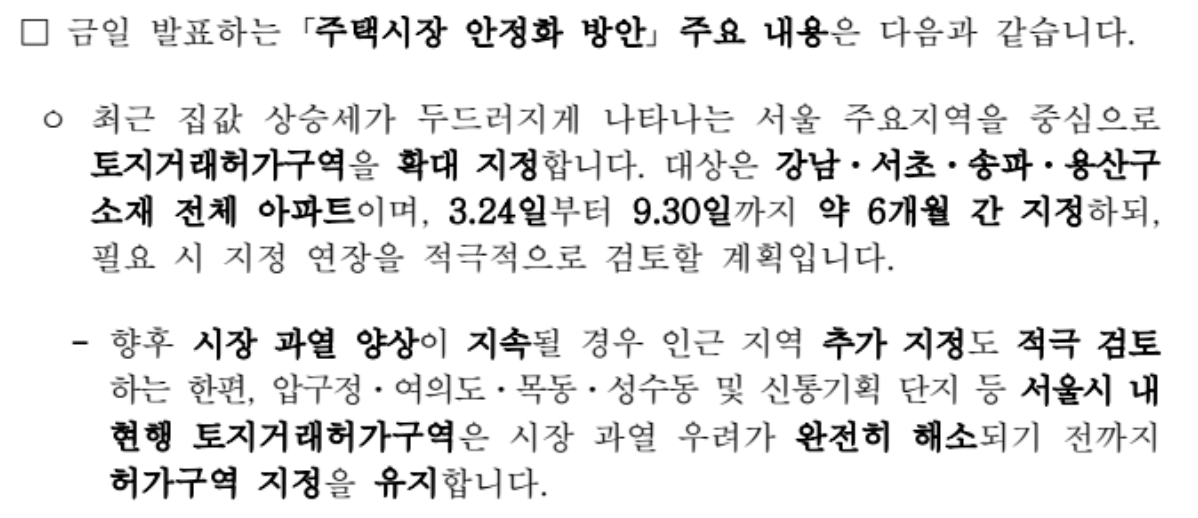 2025년 3월 정부 발표에 따르면, 서울 및 수도권의 주요 지역을 중심으로 토지거래허가구역이 확대되었습니다.